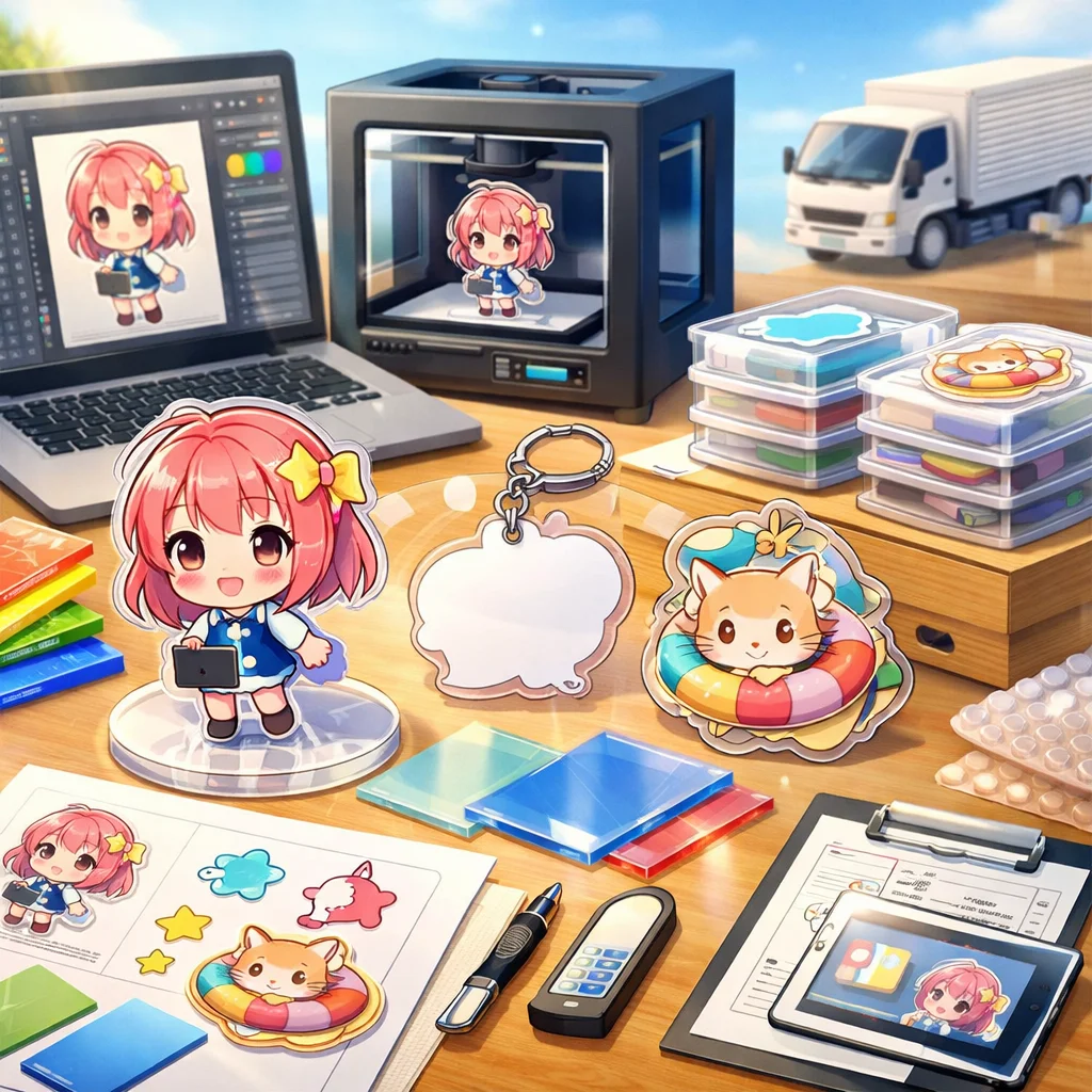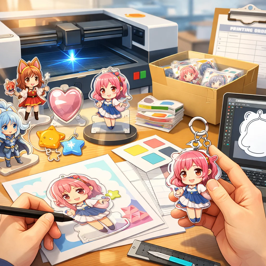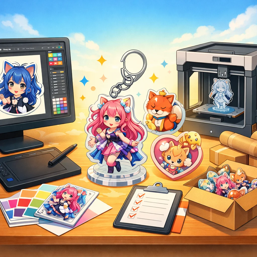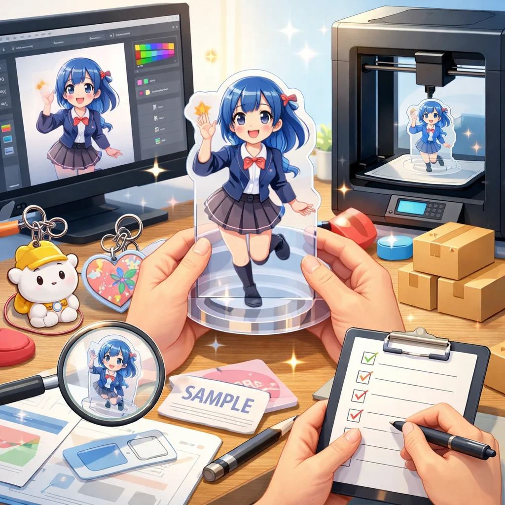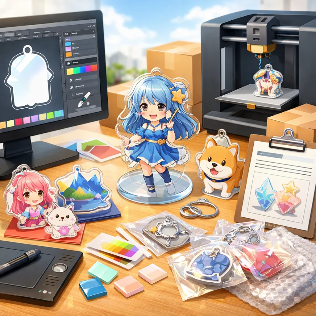 アクリルグッズの製作において、デザインの作成から入稿サポート、試作、そして発注までの一連の流れを理解し、各ステップで適切な対応を行うことで、満足のいく製品を手に入れることができます。