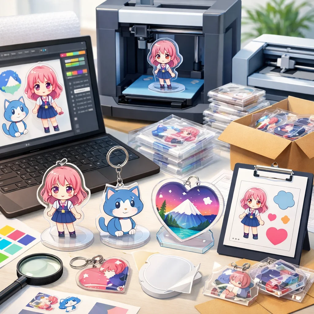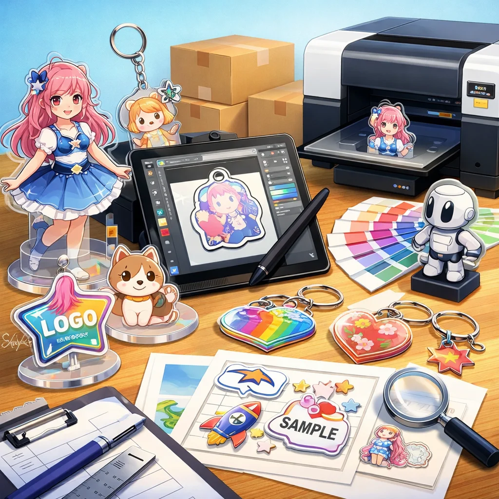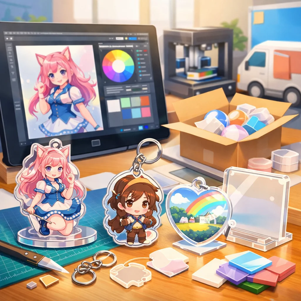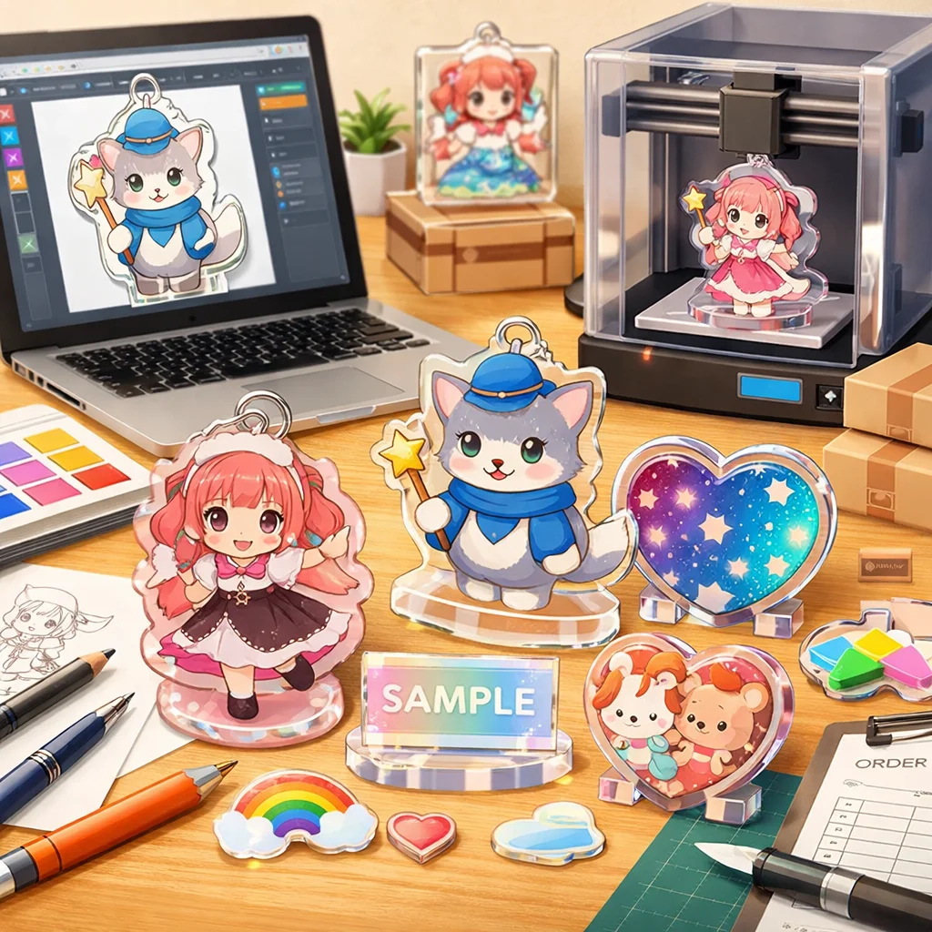 アクリルグッズの製作において、デザインの作成から入稿サポート、試作、そして発注までの一連の流れを理解し、各ステップで適切な対応を行うことで、満足のいく製品を手に入れることができます。