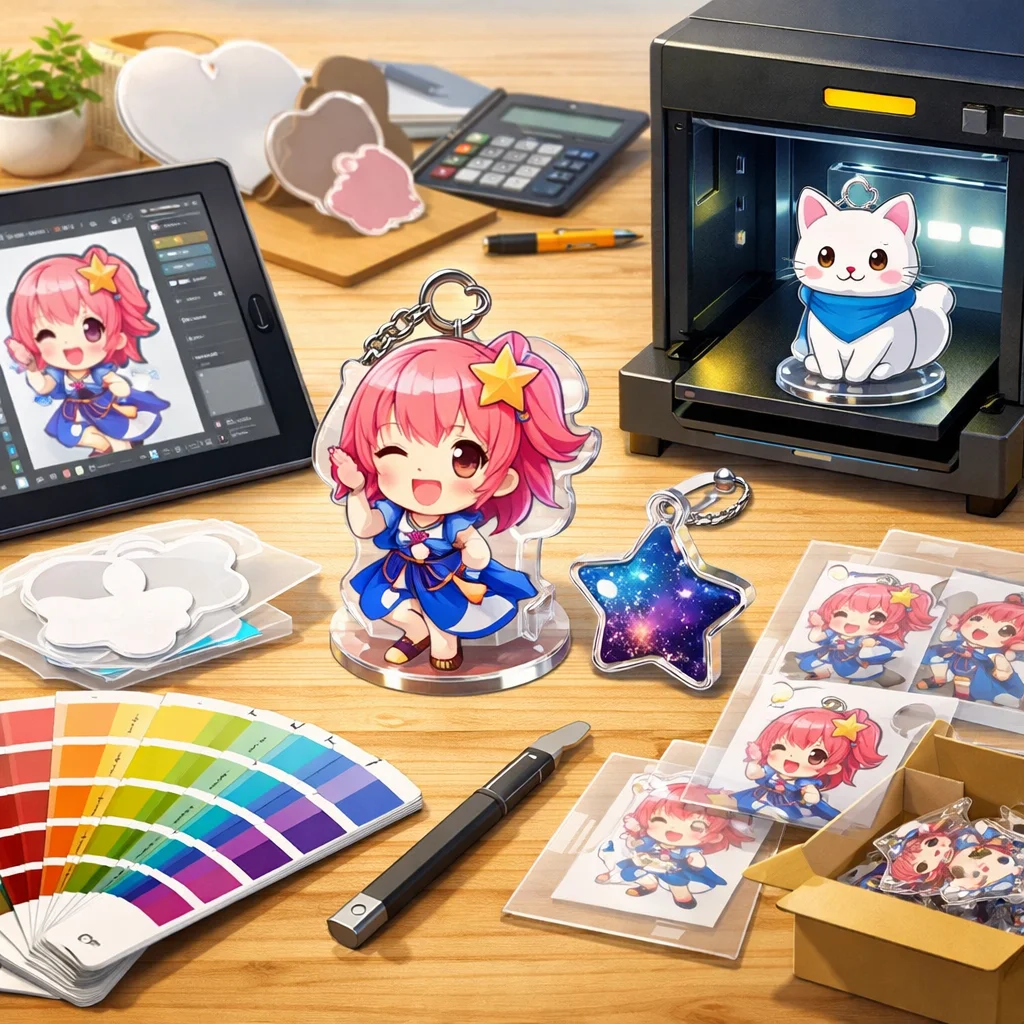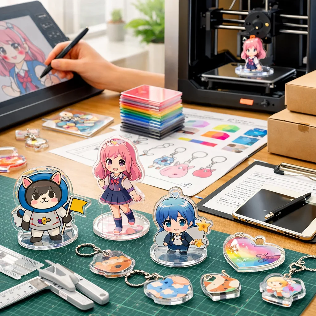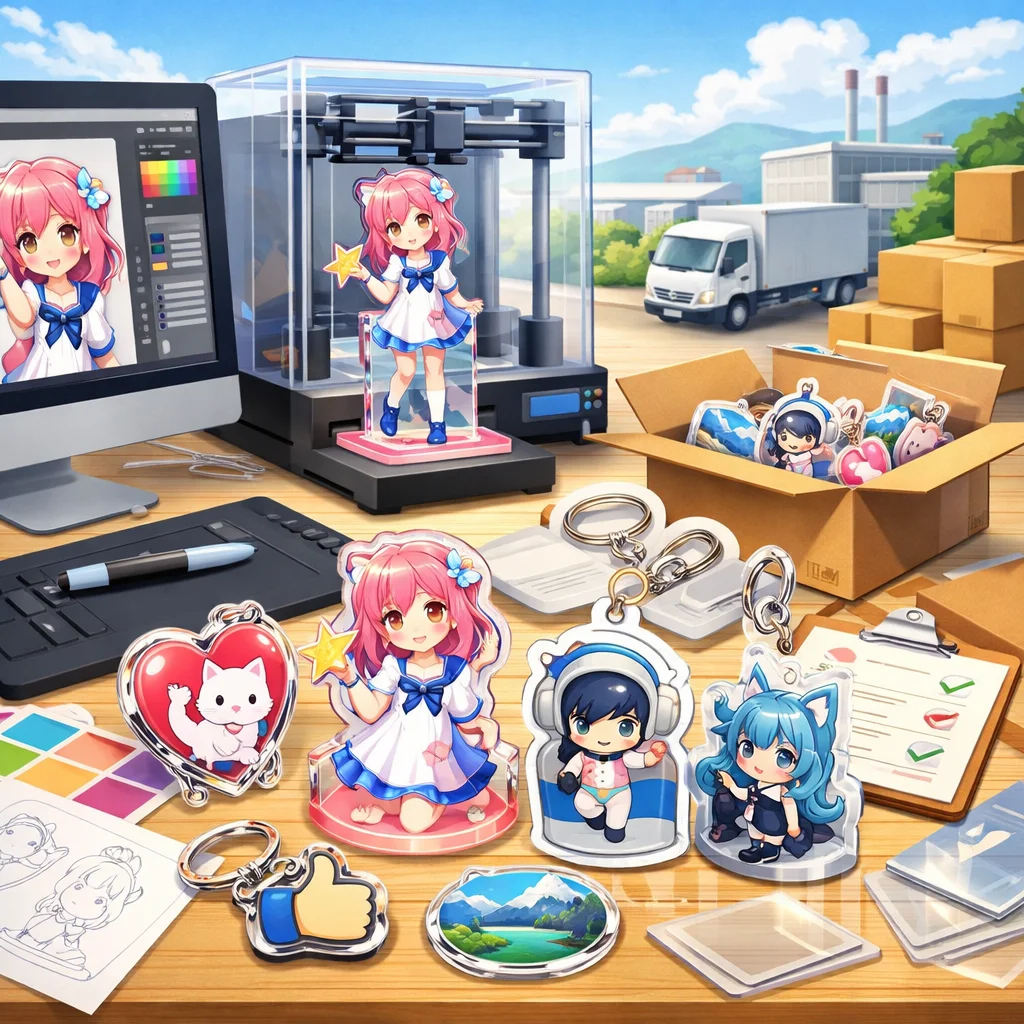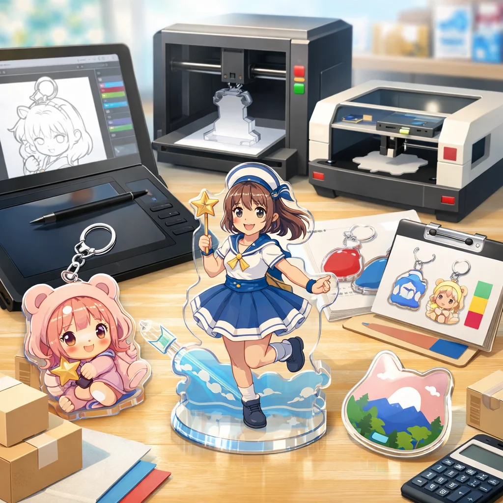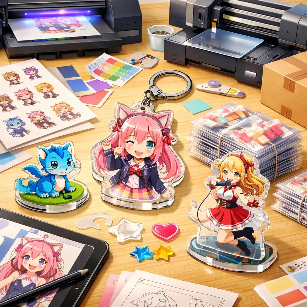 アクリルグッズの製作において、デザインの作成から入稿サポート、試作、そして発注までの一連の流れを理解し、各ステップで適切な対応を行うことで、満足のいく製品を手に入れることができます。