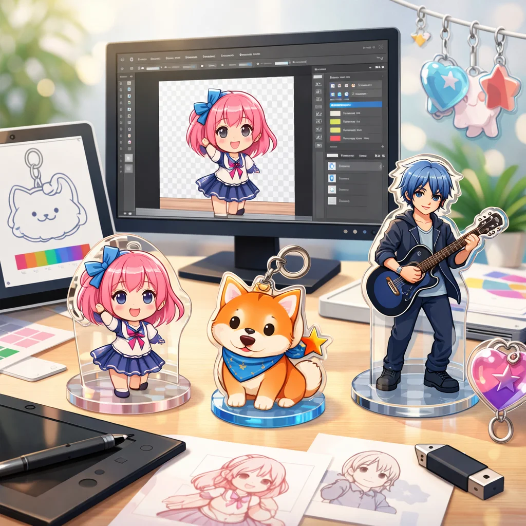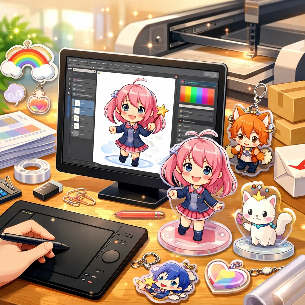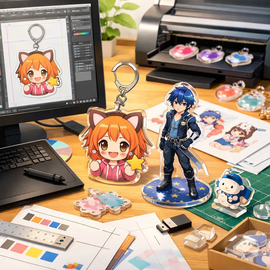 これらのポイントを考慮して、アクリルグッズのデザインプロジェクトに取り組めば、困難な入稿手順もクリアし、魅力ある製品を世に出すことができるでしょう。アクリルグッズの可能性を最大限に引き出し、デザインに命を吹き込むプロセスを楽しんでください。