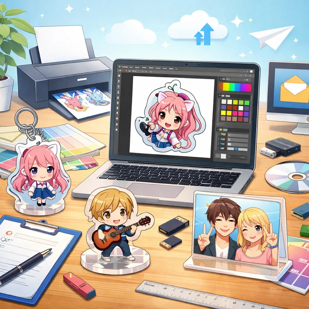 アクリルグッズの制作において、デザイン素材の準備は非常に重要です。ここでは、デザインに必要な素材の集め方から、入稿サポートを受けるための具体的手順を解説します。
