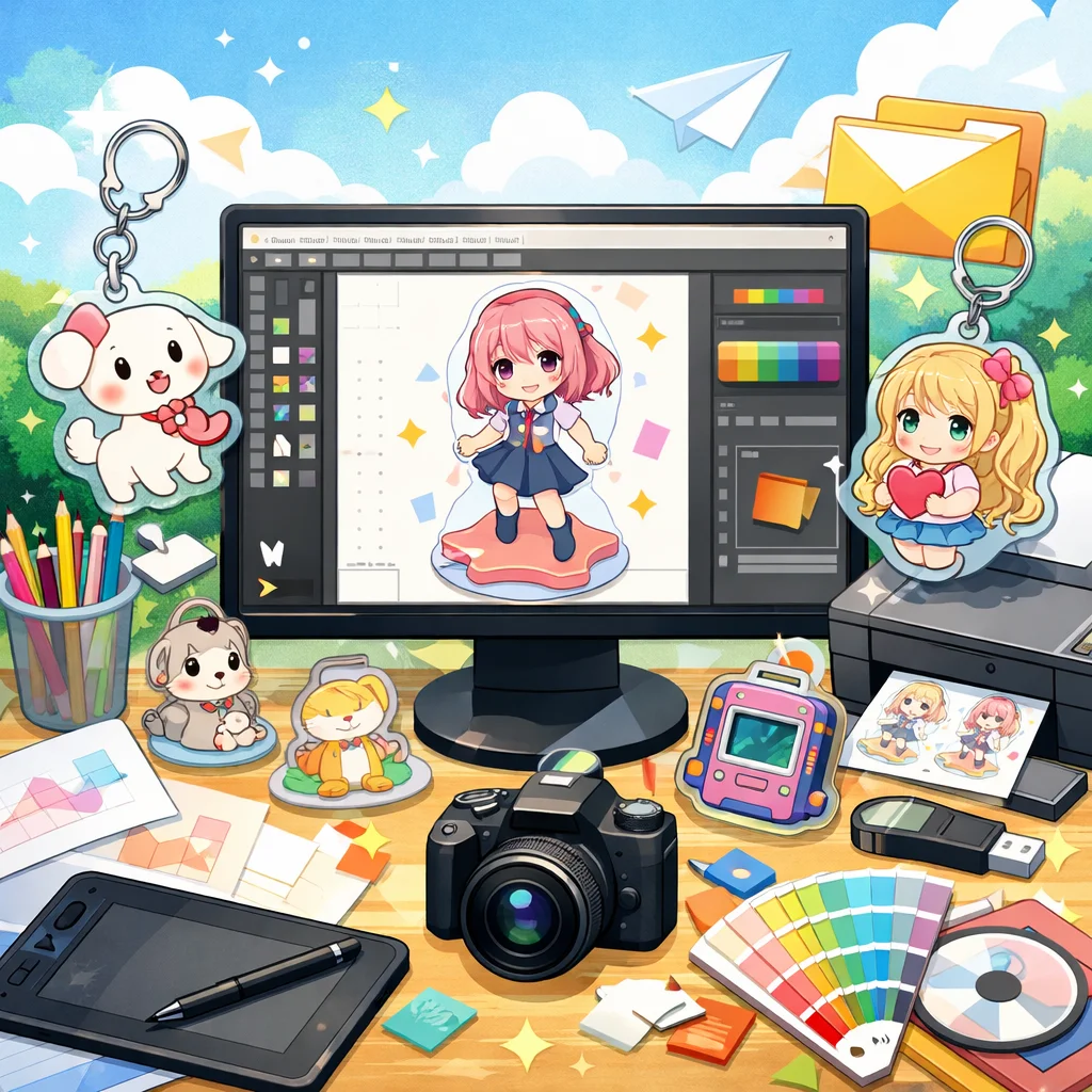 アクリルグッズのデザイン入稿を成功させるには、使用ツールの特性を把握し、解像度、カラープロファイル、最小サイズを考慮することが重要です。