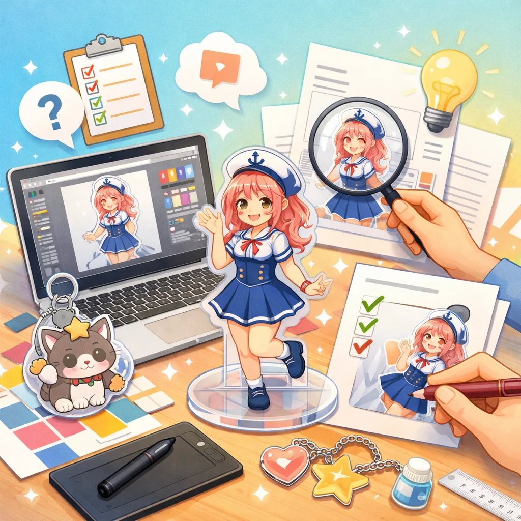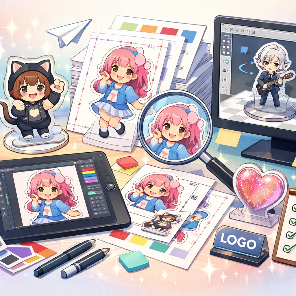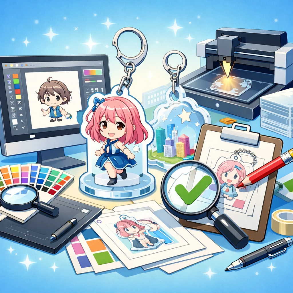 アクリルグッズの制作は、クオリティの高い製品を作るために、いくつかの重要なステップを経る必要があります。その中でも、デザインから入稿サポート、さらに校正チェックを通じて量産に至るプロセスをしっかりと理解することが成功につながります。この工程は、製品が顧客の期待に応えるものであるか、また、納期通りに納品できるかに大きく影响します。以下は、これらのステップにおける注意点をまとめたものです。