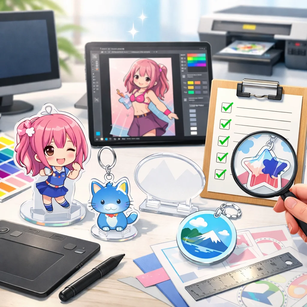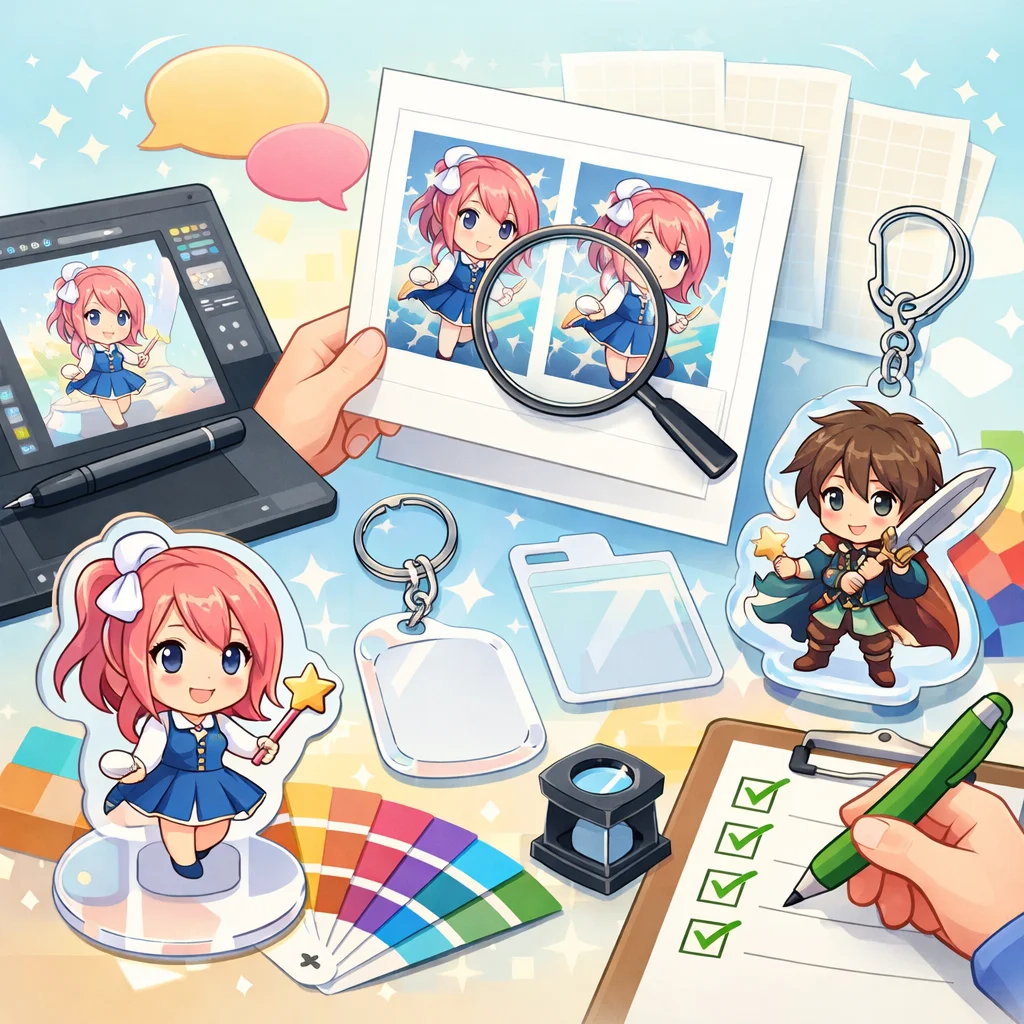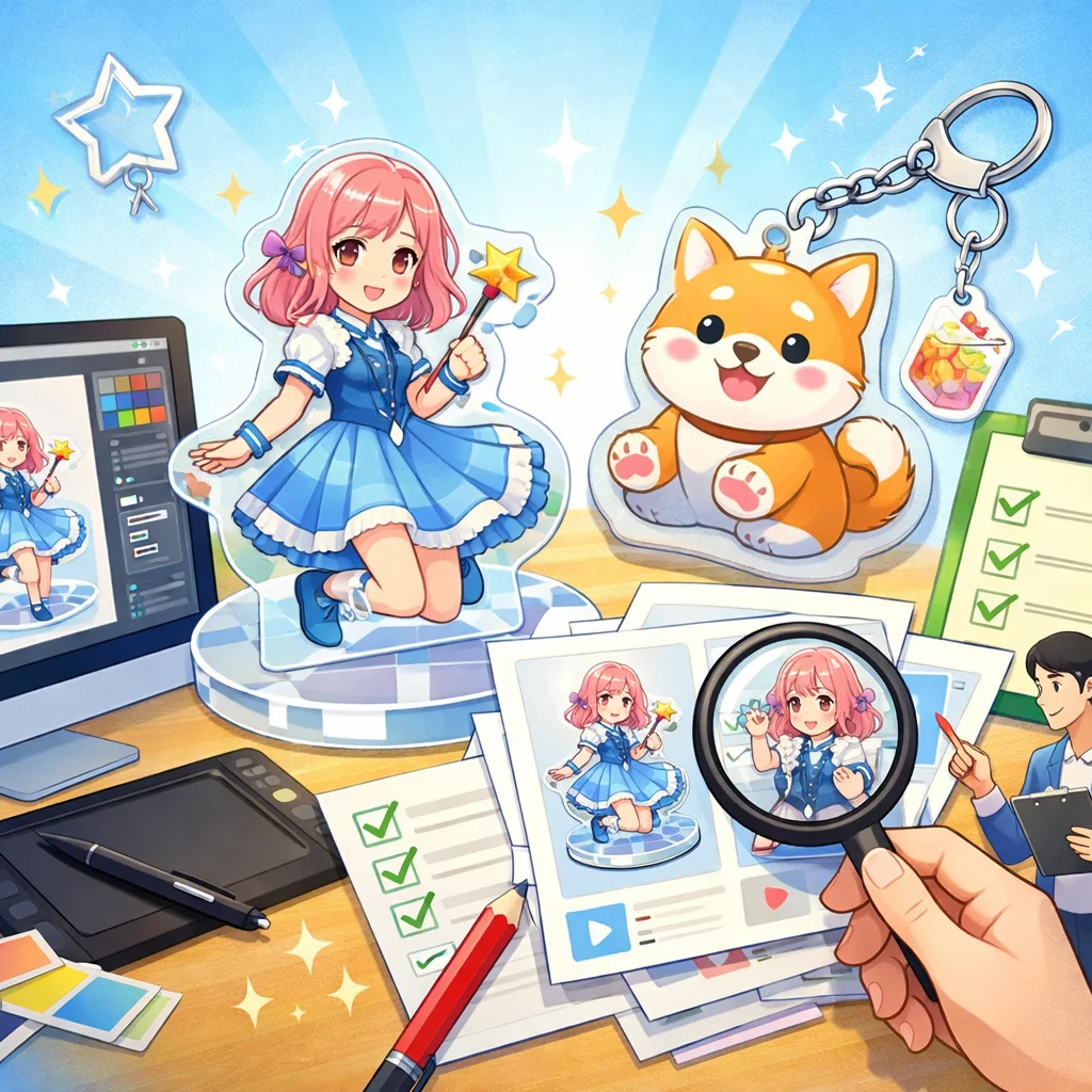 アクリルグッズの制作は、クオリティの高い製品を作るために、いくつかの重要なステップを経る必要があります。その中でも、デザインから入稿サポート、さらに校正チェックを通じて量産に至るプロセスをしっかりと理解することが成功につながります。この工程は、製品が顧客の期待に応えるものであるか、また、納期通りに納品できるかに大きく影响します。以下は、これらのステップにおける注意点をまとめたものです。