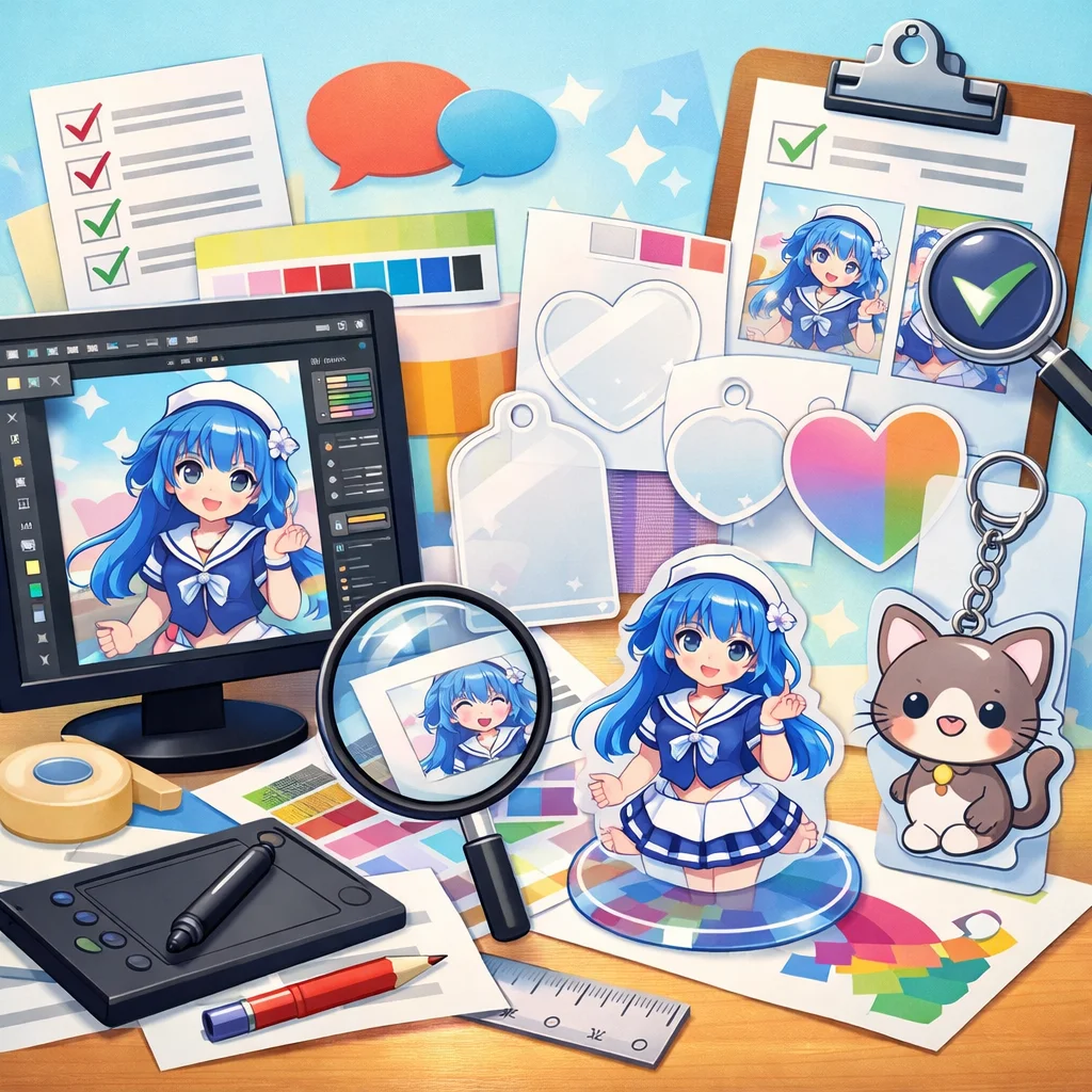これらのポイントを意識することで、スムーズな制作プロセスと高品質なアクリルグッズの完成が期待できます。