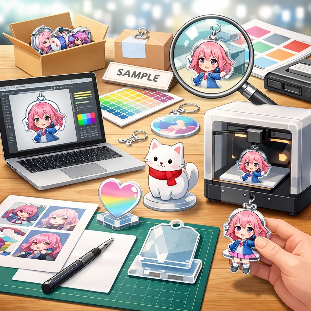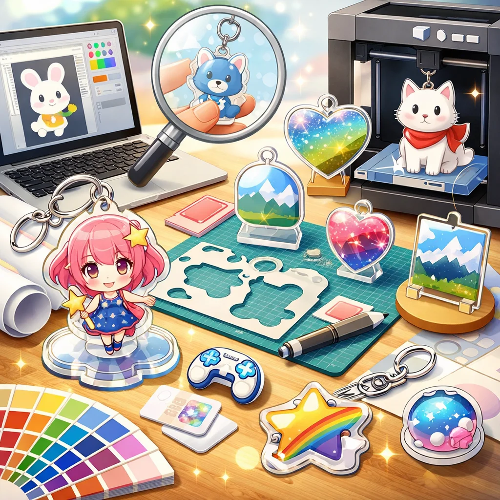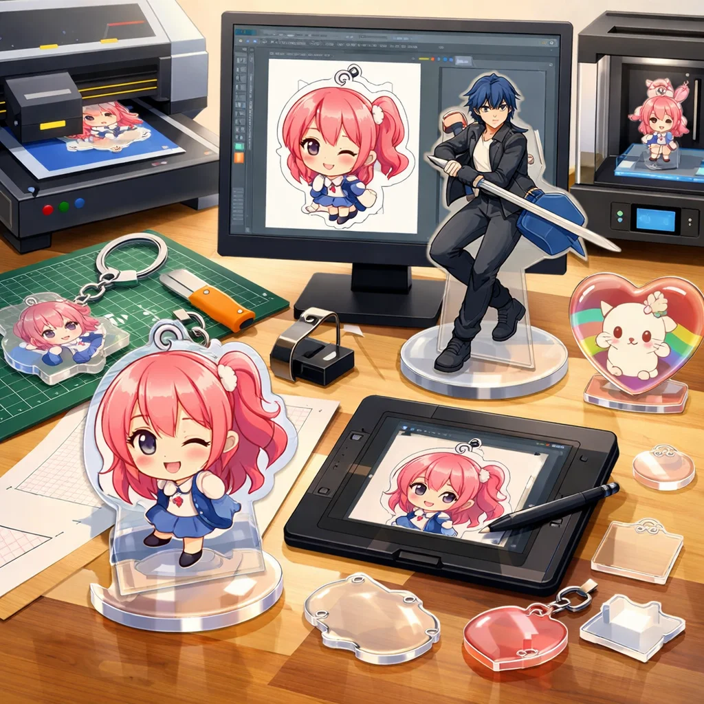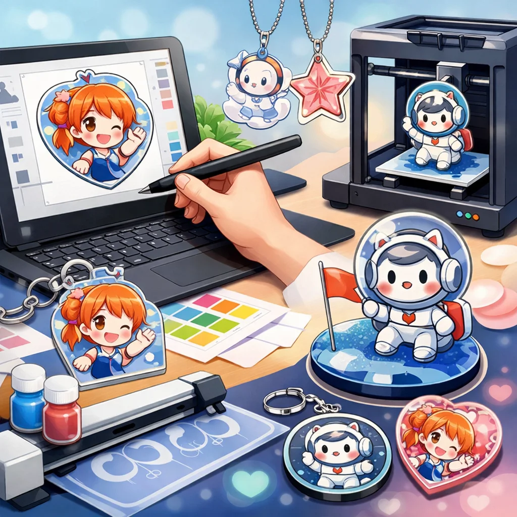アクリルグッズの作成は、種類選定からデザイン設計、入稿、試作、そして量産へと進む一連のプロセスで構成されています。本記事では、特に前半の「種類選定」と「デザイン設計」に焦点を当て、各段階での注意点や品質向上のポイントを解説します。