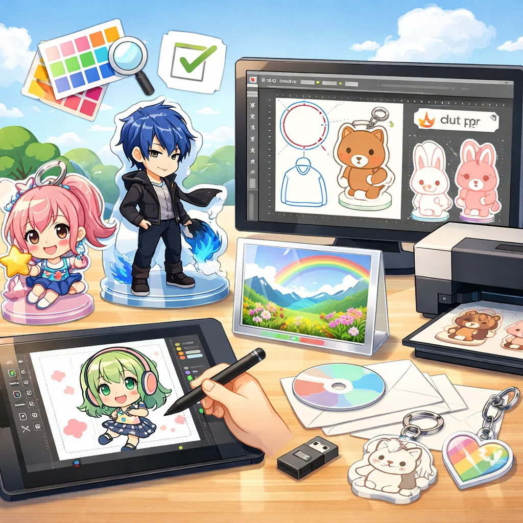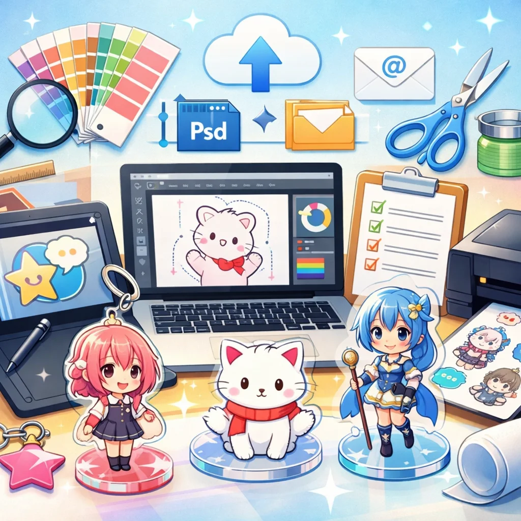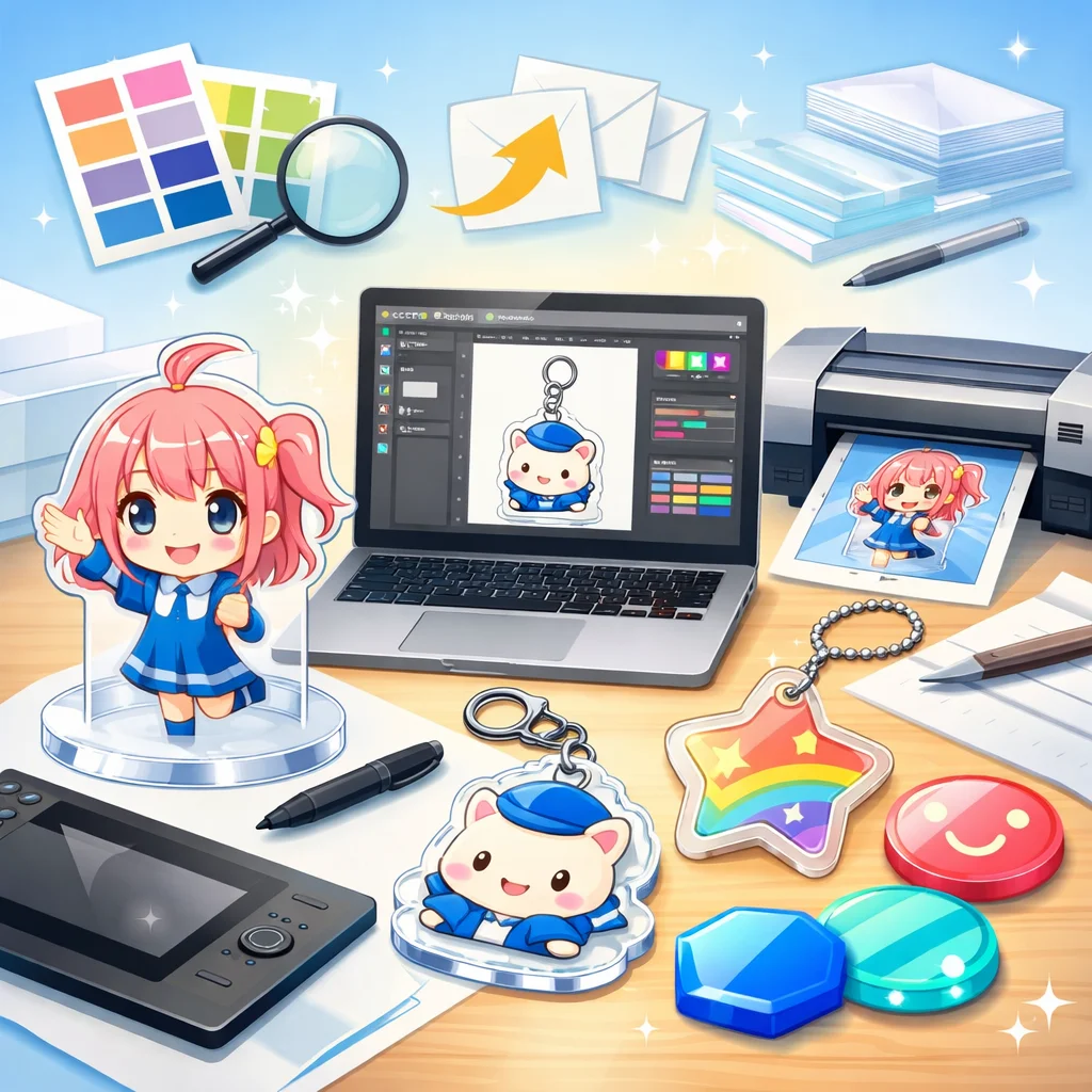 アクリルグッズの制作を初めて行う個人や同人、小規模事業者の方々にとって、デザイン入稿サポートは非常に重要なステップです。本記事では、入稿サポートの概要から、どこで受けられるか、依頼前の準備、依頼から入稿完了までの流れ、そして費用感の考え方について詳しく解説します。