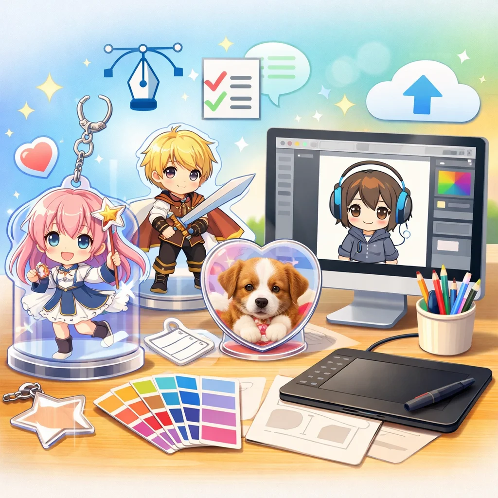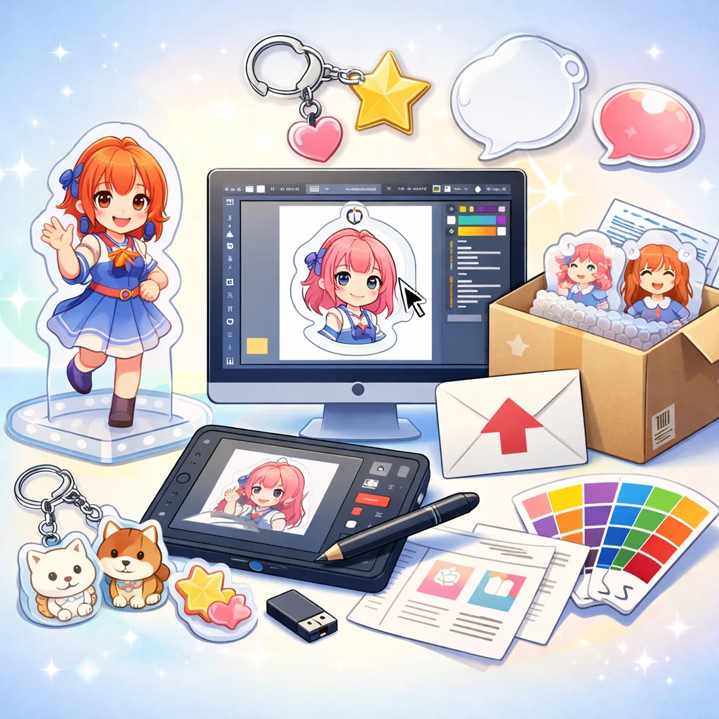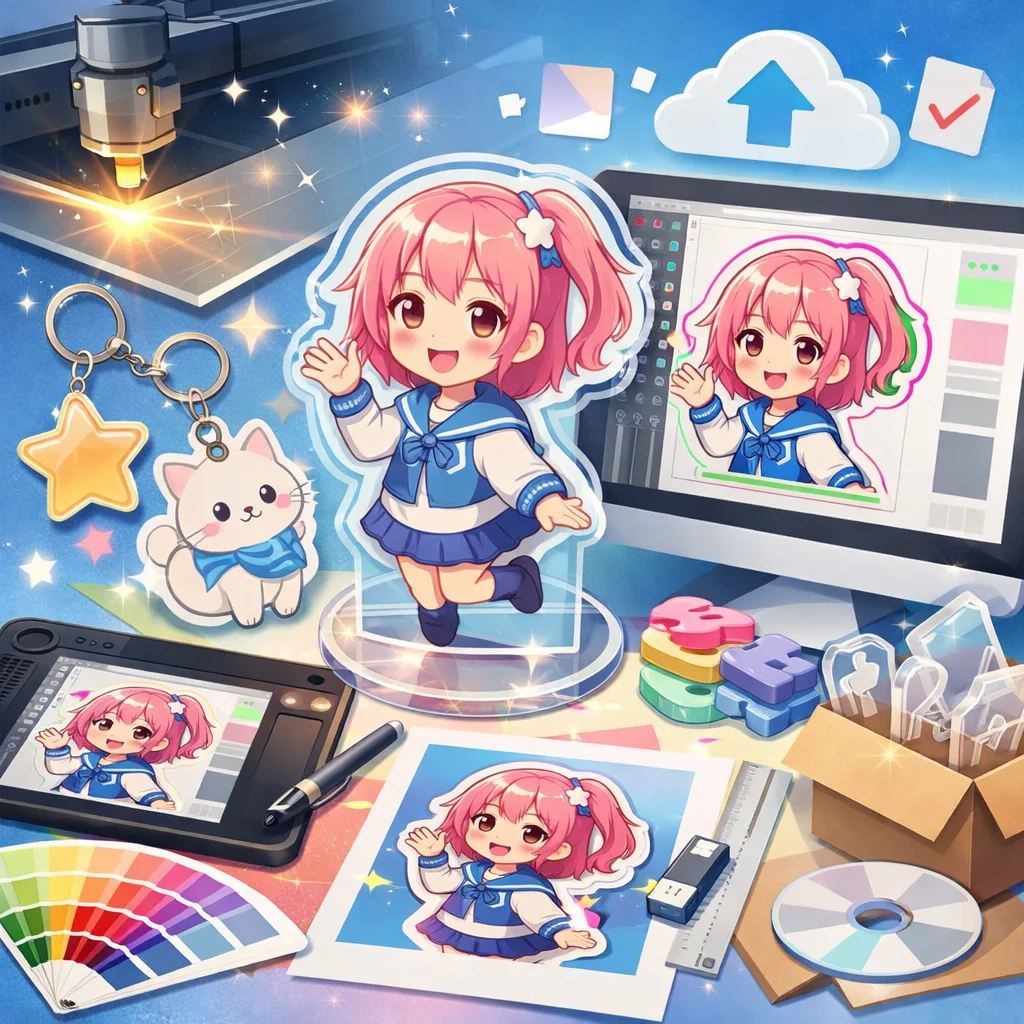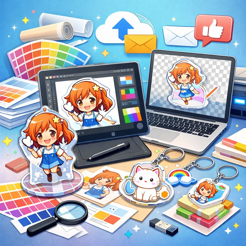アクリルグッズの制作を初めて行う個人や同人、小規模事業者の方々にとって、デザイン入稿サポートは非常に重要なステップです。本記事では、入稿サポートの概要から、どこで受けられるか、依頼前の準備、依頼から入稿完了までの流れ、そして費用感の考え方について詳しく解説します。