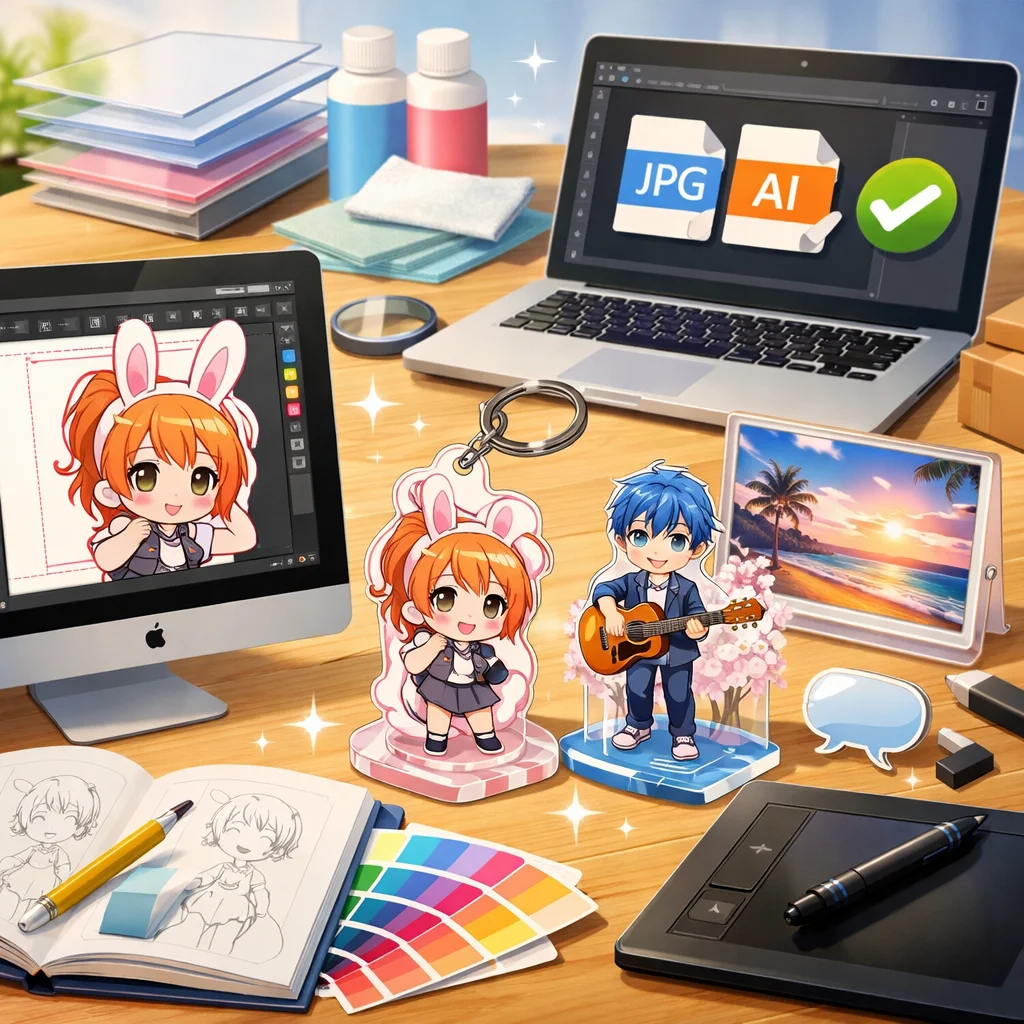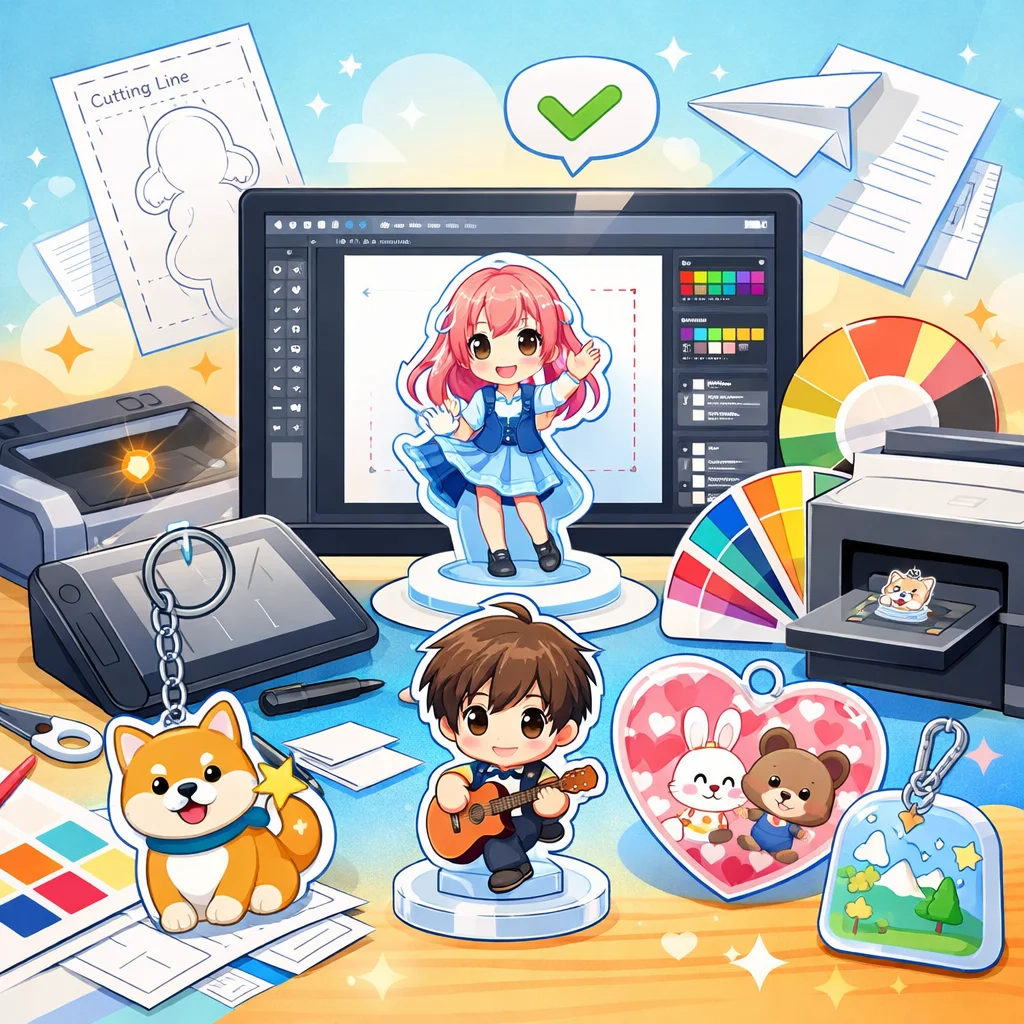 正しい知識を持って入稿することは、成功するアクリルグッズの制作への第一歩です。入稿サポートを上手に活用して、素晴らしいデザインを形にしましょう。
