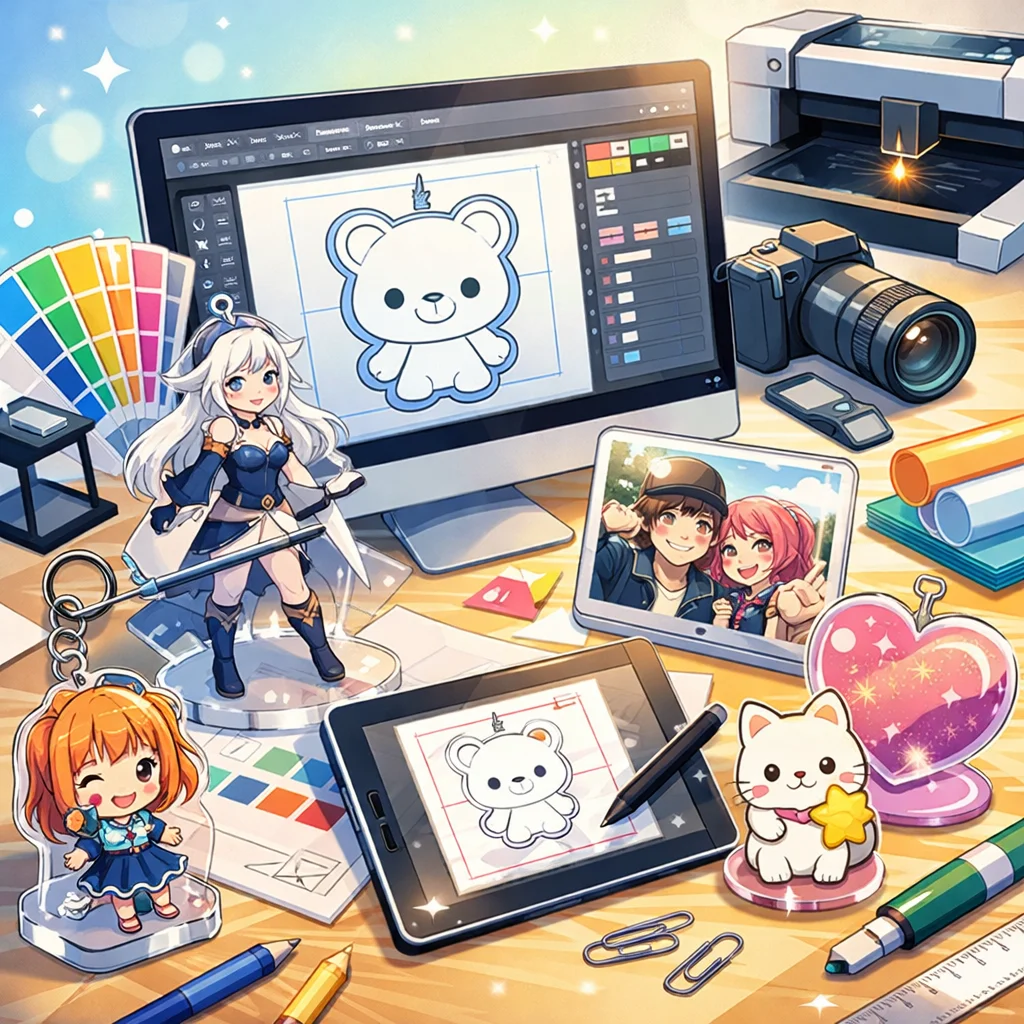 アクリルグッズのデザインに最適なツール選びは重要です。各ツールの特性と料金形態を理解し、入稿サポートをしっかり受けられるように準備を整えましょう。自分の作品をしっかり表現できるツールを選べば、より良い結果が得られるはずです。
