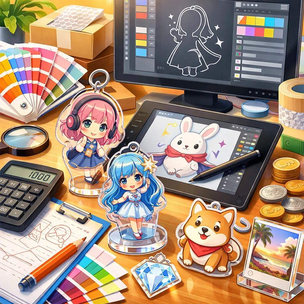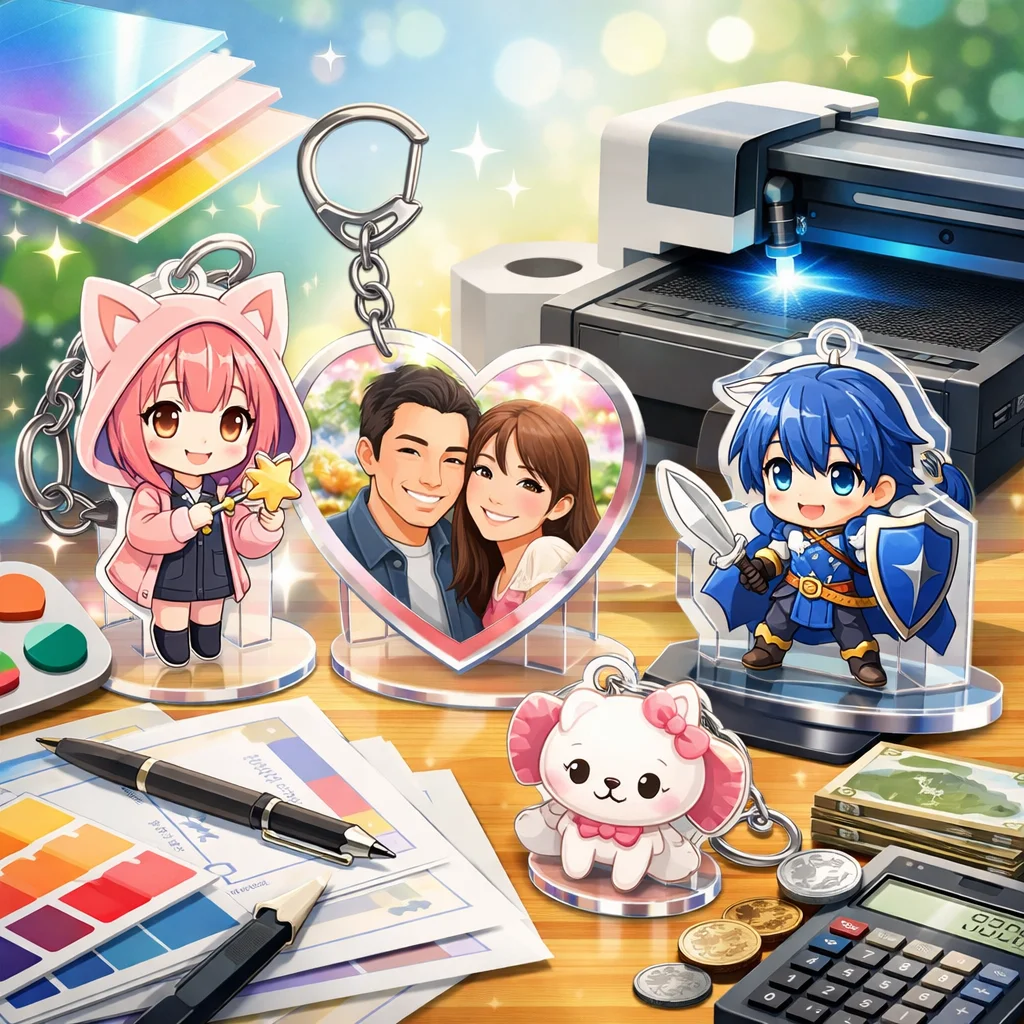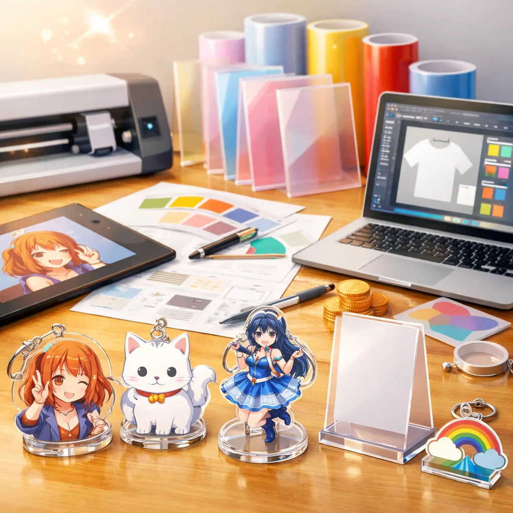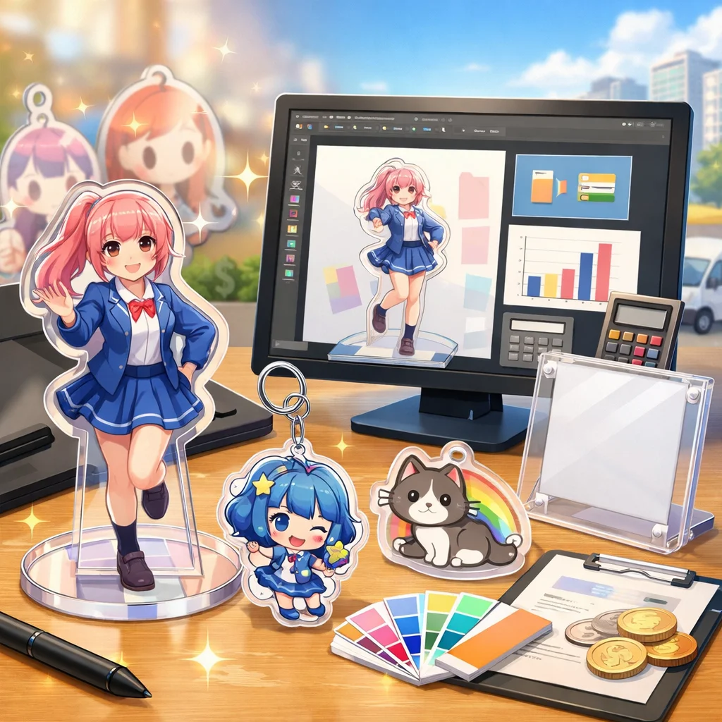 「デザイン代行」はアクリルグッズの売上やブランド印象に大きく影響します。見た目の統一感、印刷適性、SNS映え、工数削減などの利点がある一方で、コストがかかる場合もあります。自作か代行かの選択は、ニーズに応じて慎重に行うことが大切です。
