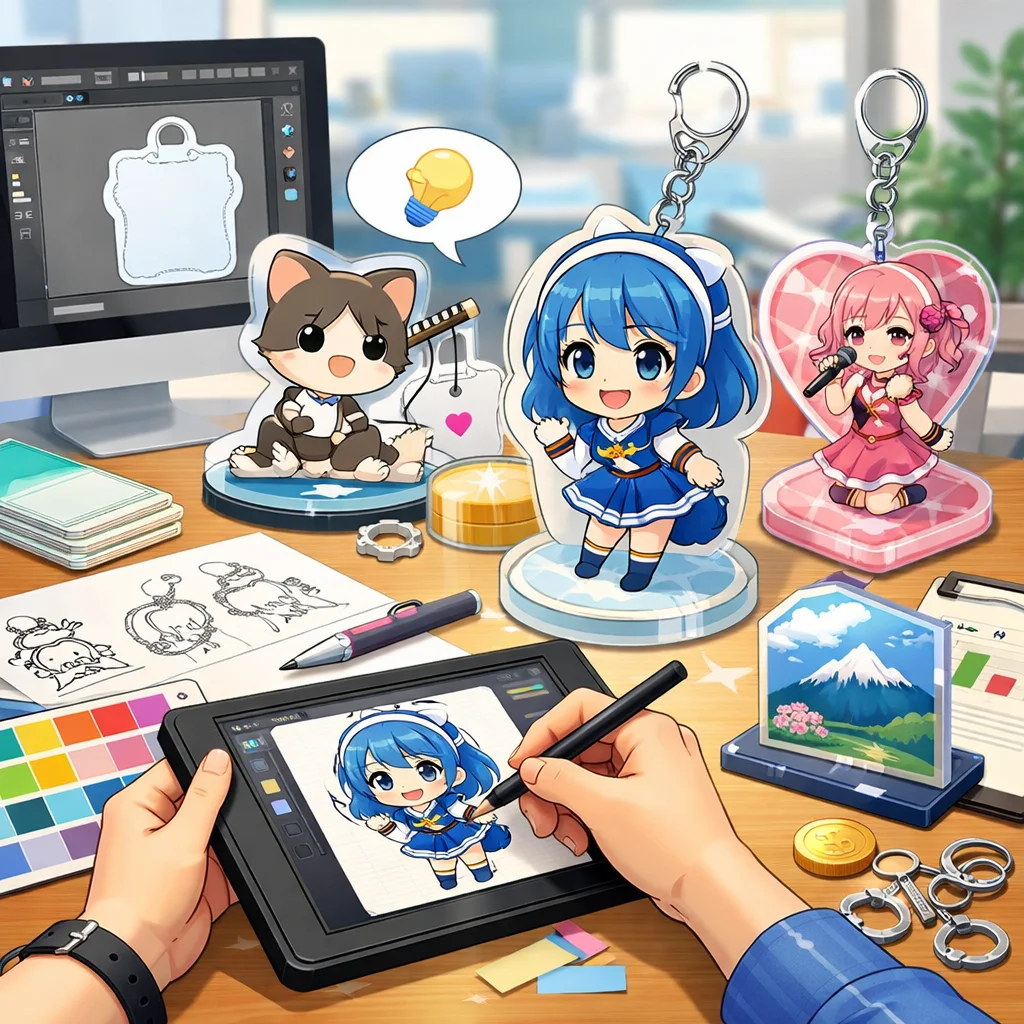 アクリルグッズの市場は競争が激しく、オリジナリティを持ったデザインがこれまで以上に重要となっています。消費者に強い印象を与え、他の製品と差別化するためには、さまざまな要素に工夫を凝らすことが求められます。以下では、アクリルグッズのデザインにおける差別化アイデアを具体的な形で提案し、さらにデザイン代行入稿サポートの利用がどのように役立つかについても触れていきます。