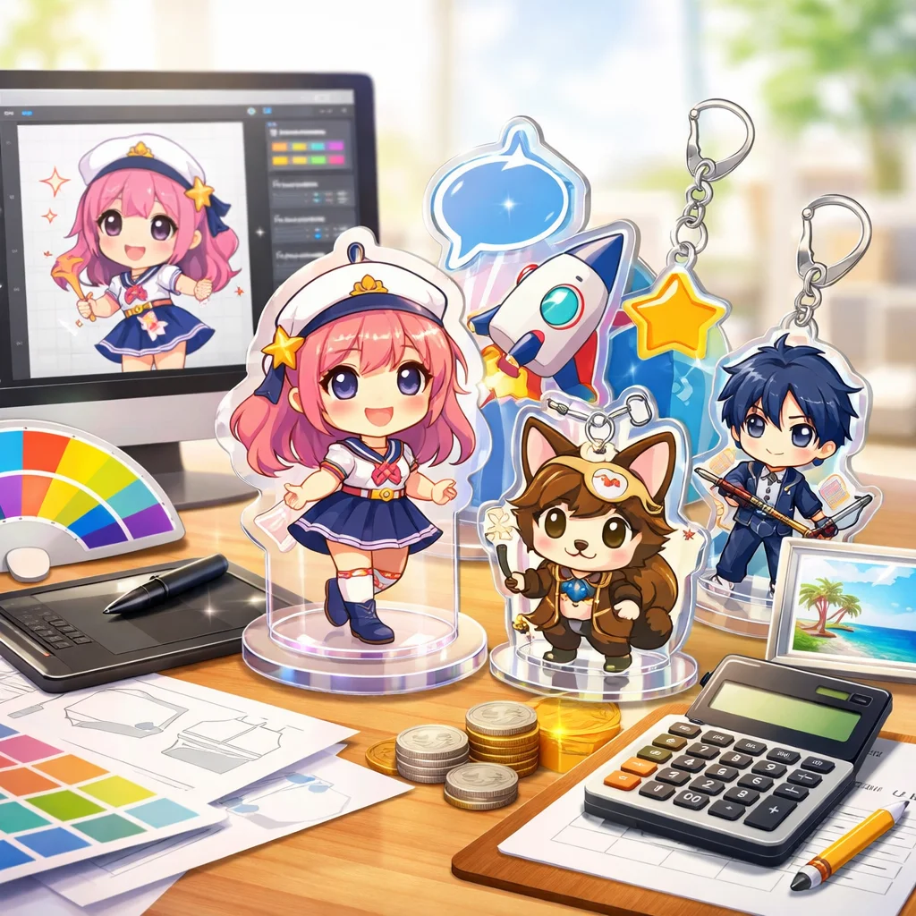 アクリルグッズの製作において、デザイン入稿サポートデザイン代行料金など、さまざまな要素を考慮して最適な選択を行ってください。