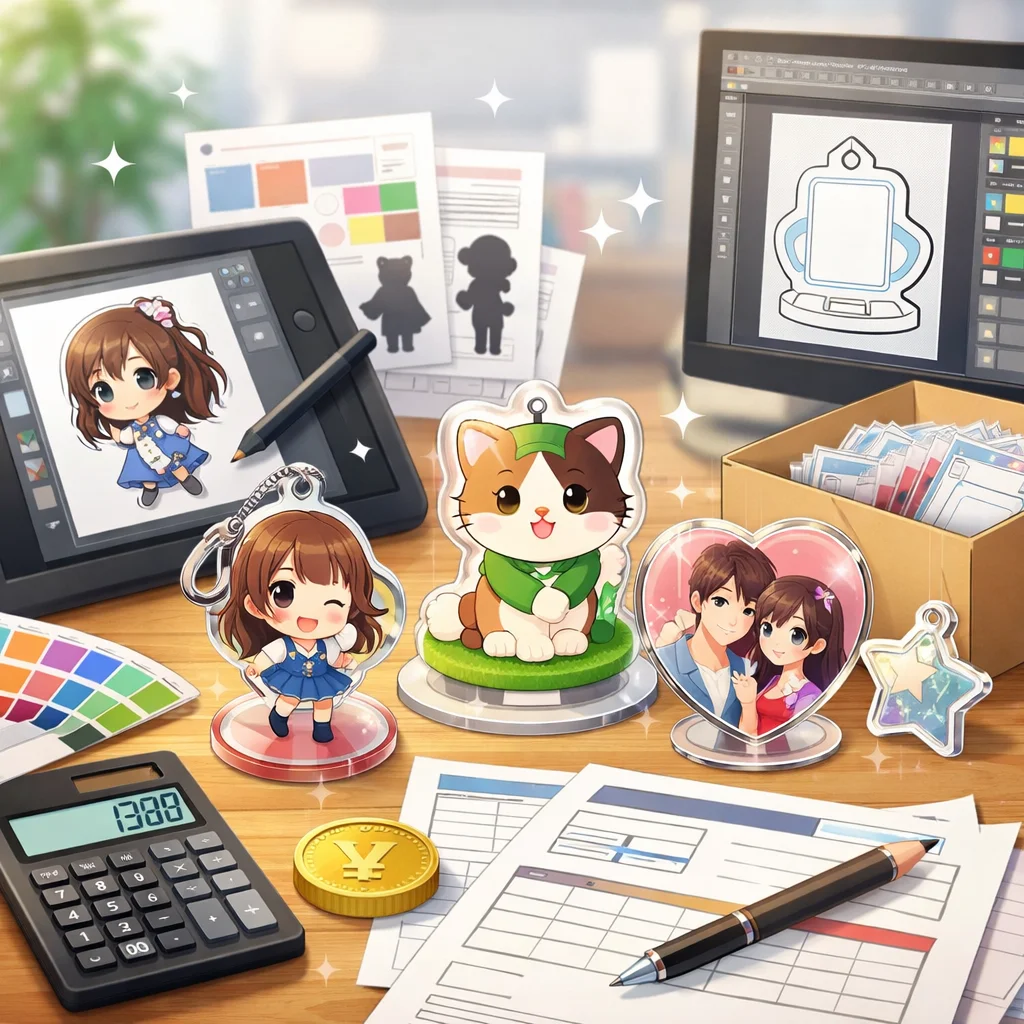 アクリルグッズの「デザイン」や「入稿サポート」、「デザイン代行」、「料金」に関して、これらの情報を抑えておくことで、よりスムーズな製作が可能になります。