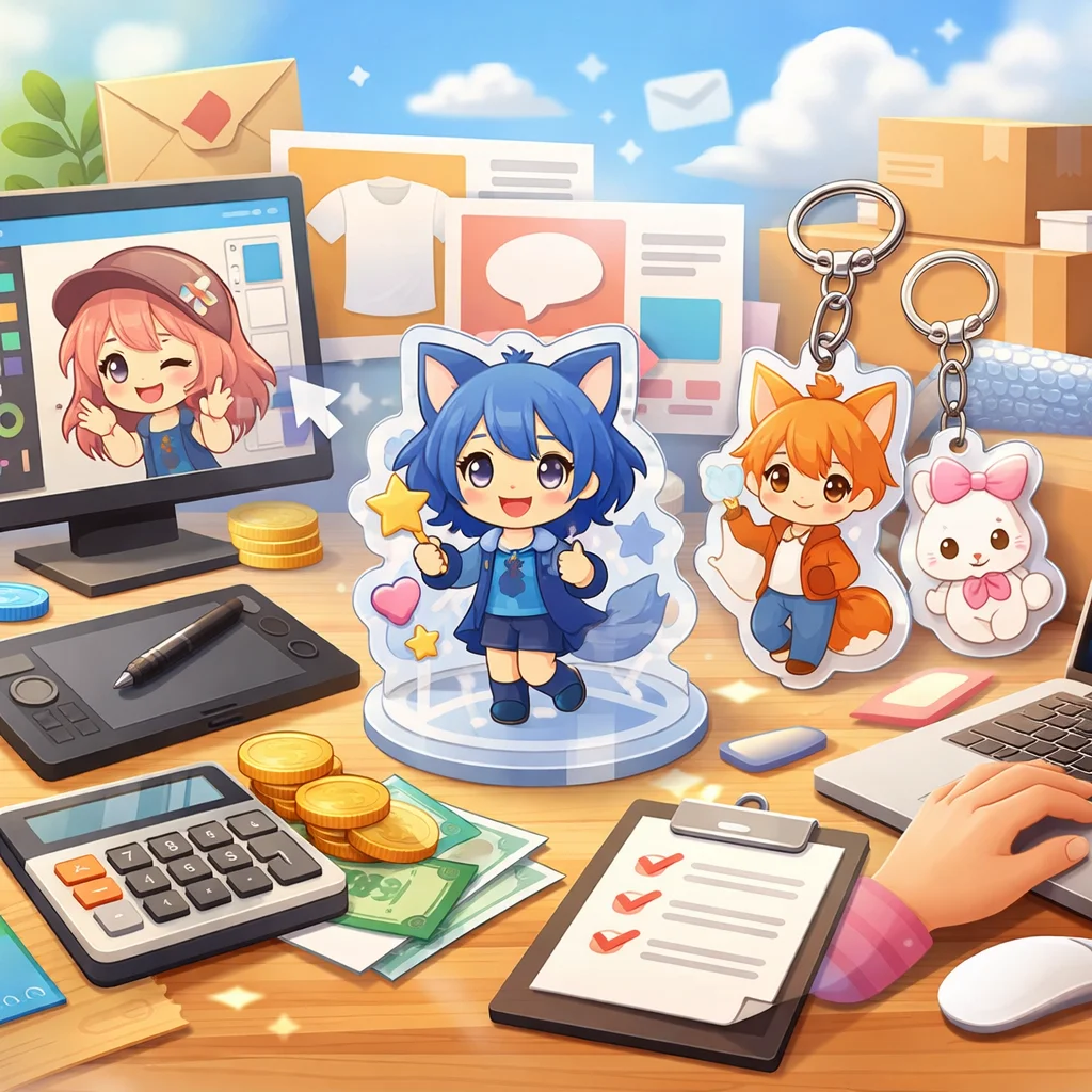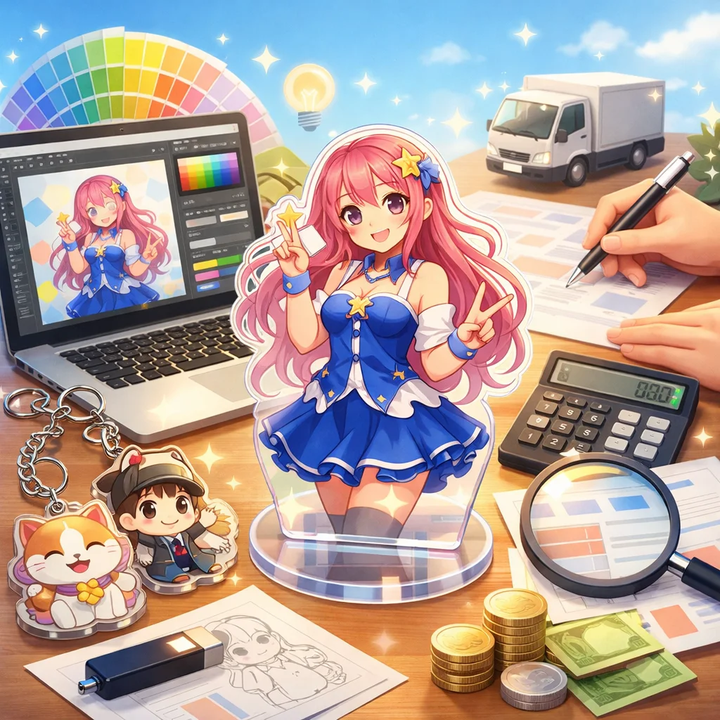 このように、アクリルグッズの制作には各工程でのチェック項目が存在し、それらを一つ一つ確認することで、思い描いていた商品に近づくことができます。デザイン代行や入稿サポートが必要な場合も、しっかりとした料金体系を持つ業者を選ぶことが重要です。品質にこだわりながら、適切なサポートを受けることで、理想のアクリルグッズを手に入れることができるでしょう。