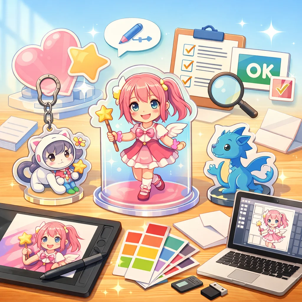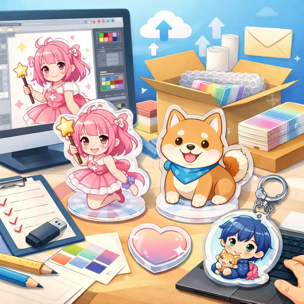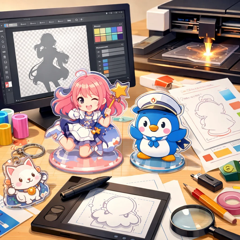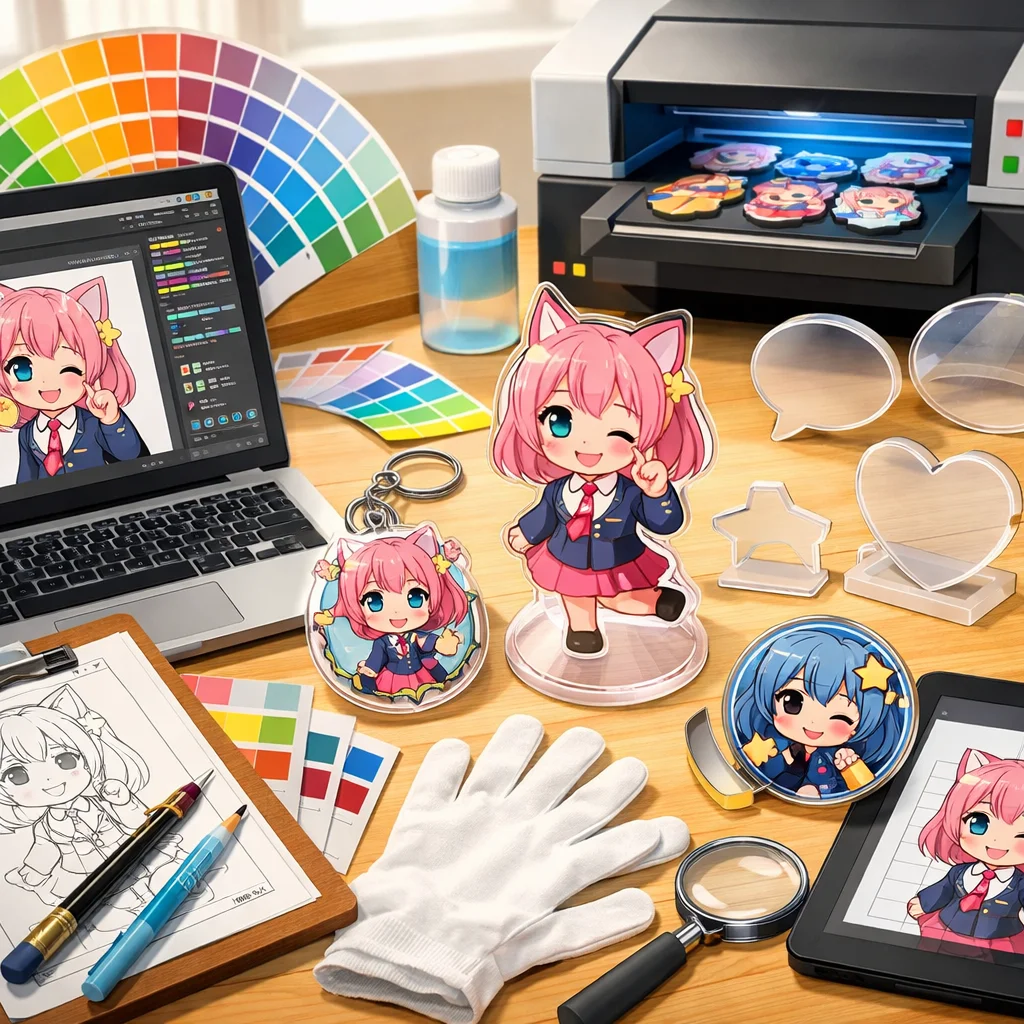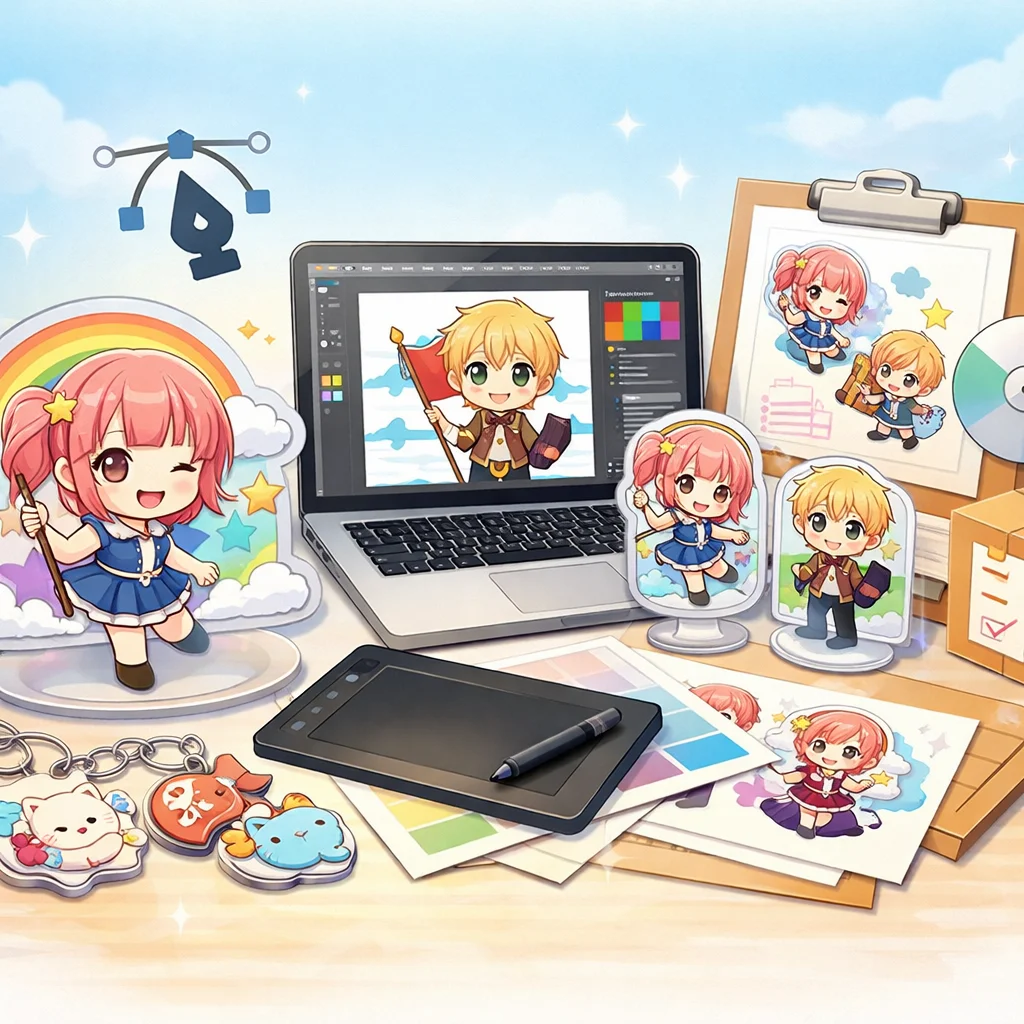 アクリルグッズの制作プロセスでは、しっかりとしたデザインとデータ準備が必要です。特に、視認性と魅力的な色合いを意識してください。