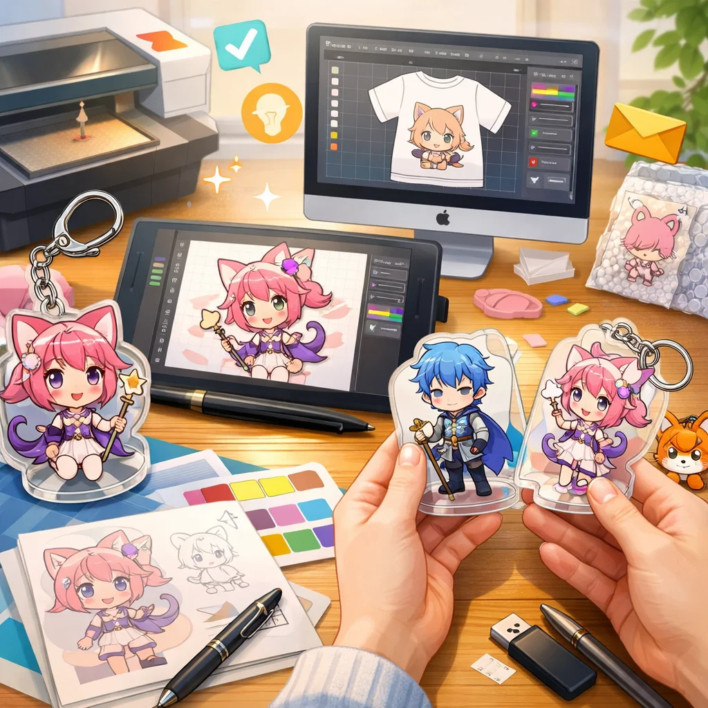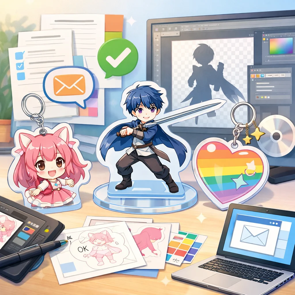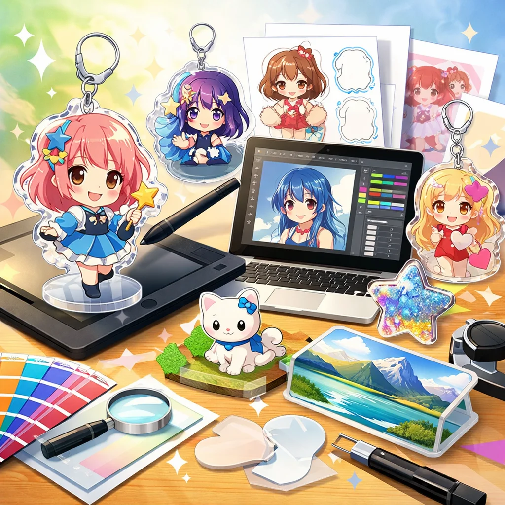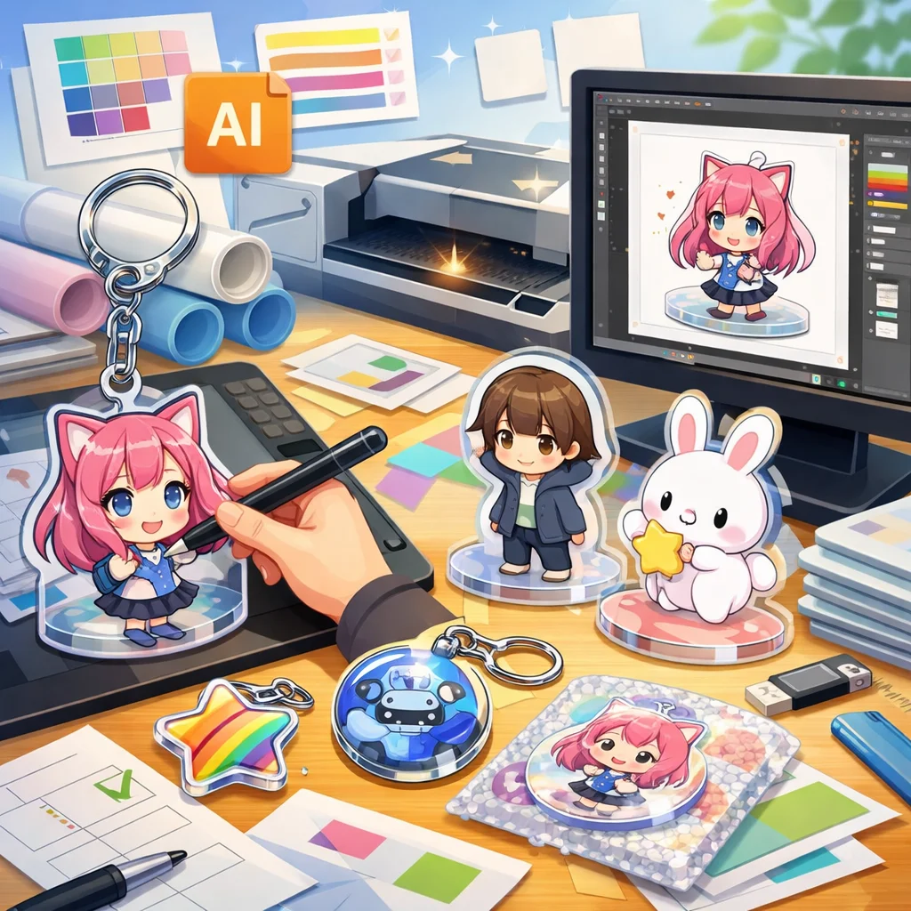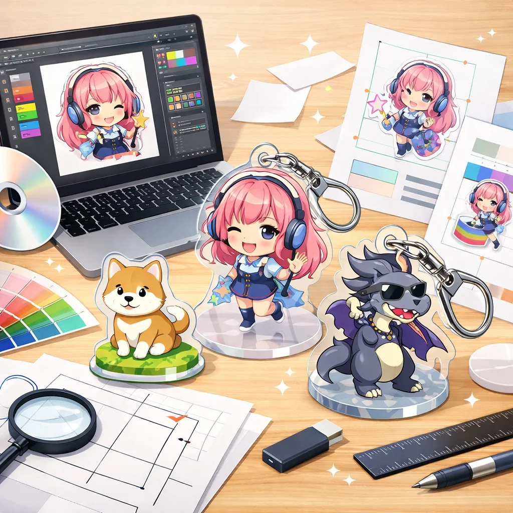 アクリルグッズの制作プロセスでは、しっかりとしたデザインとデータ準備が必要です。特に、視認性と魅力的な色合いを意識してください。