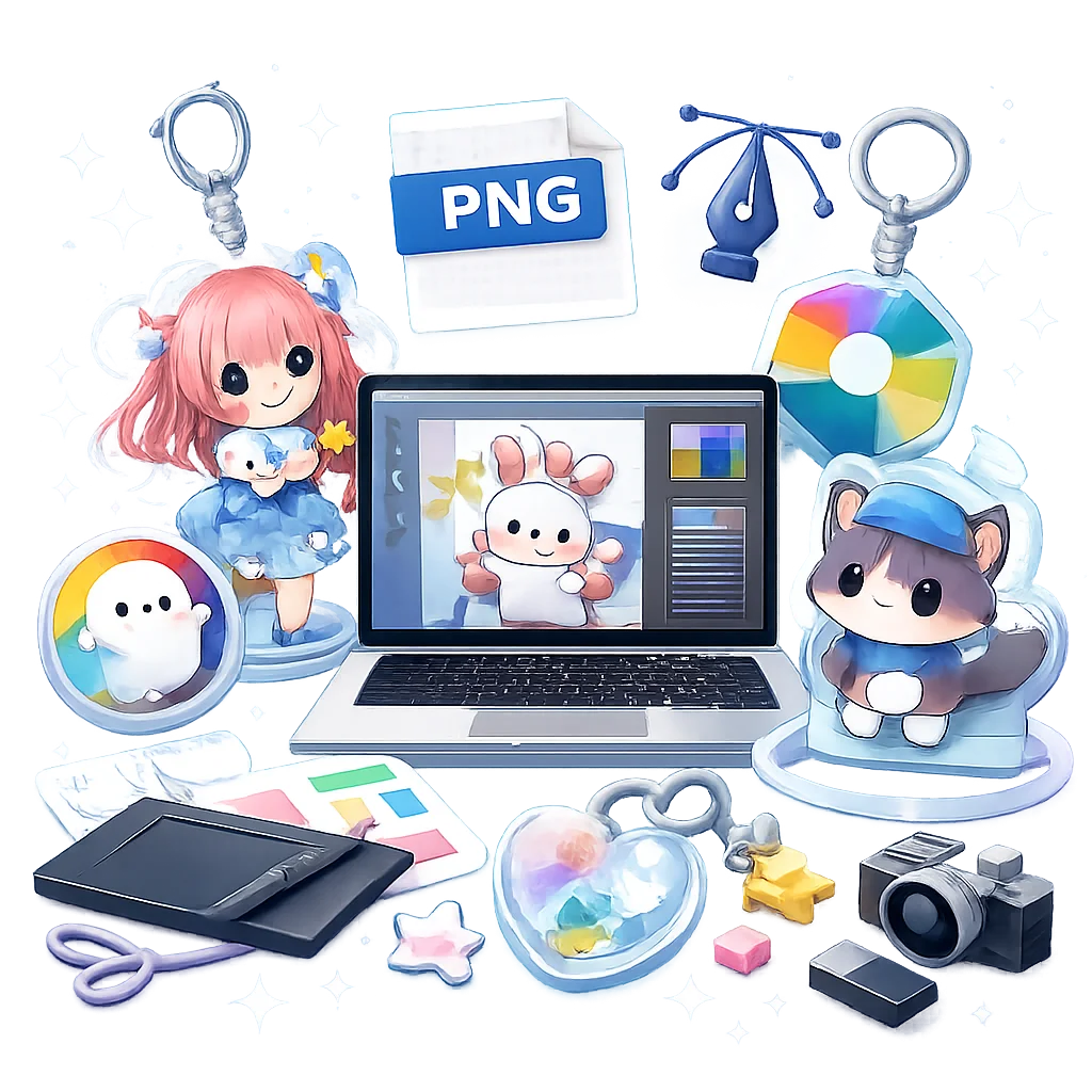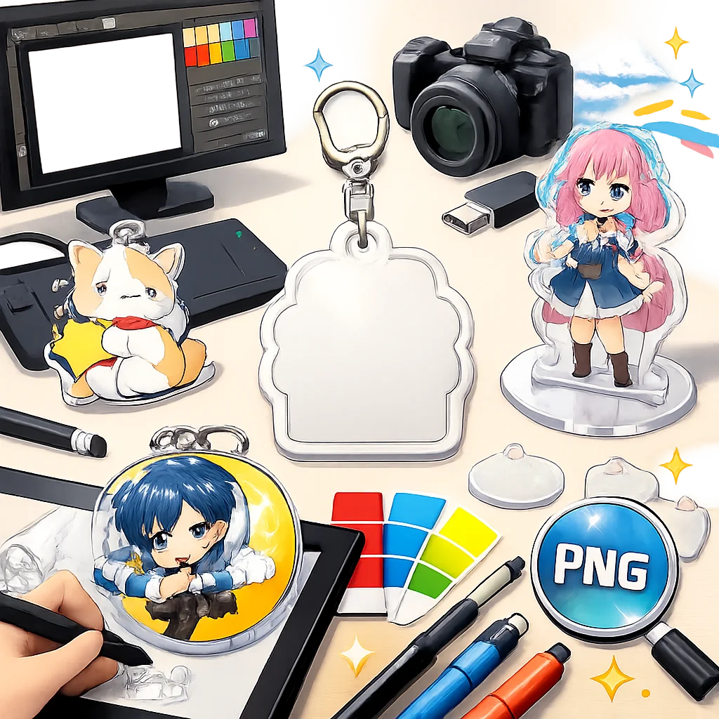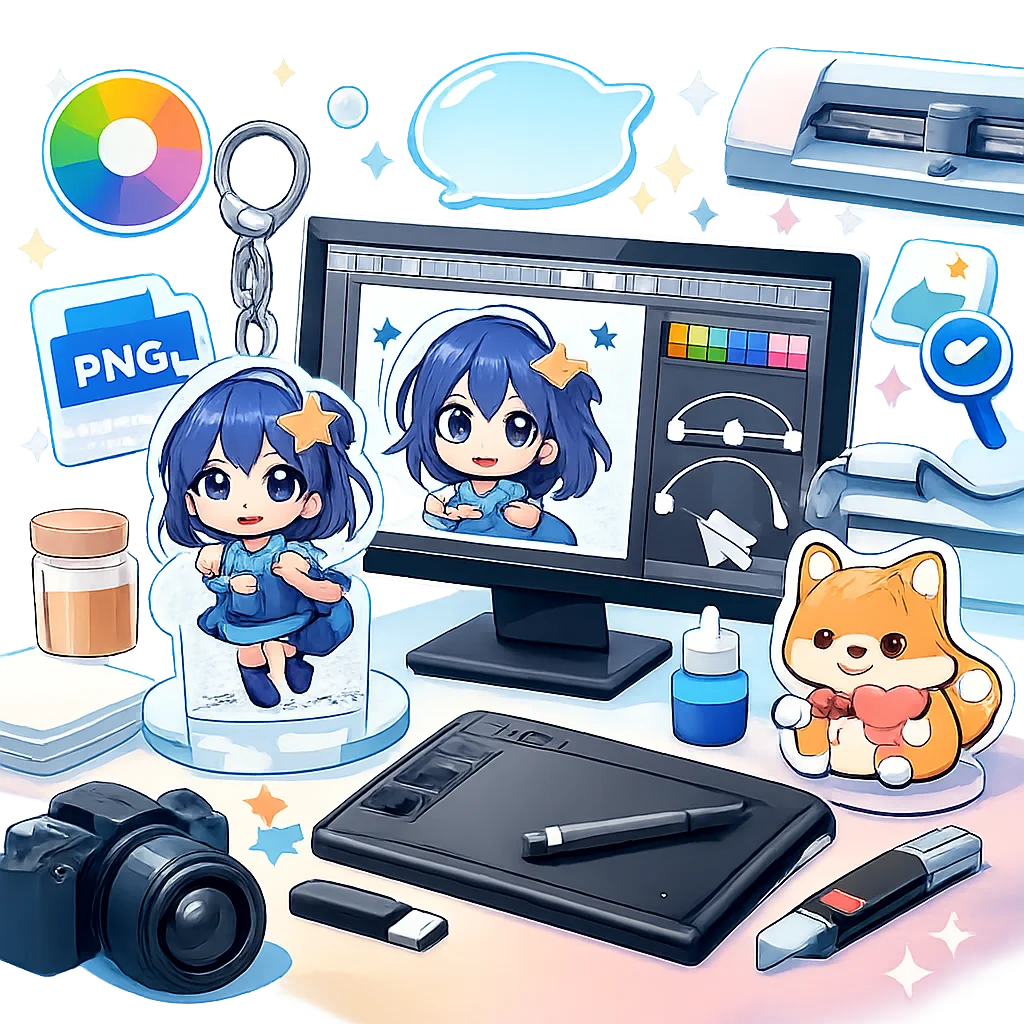 アクリルグッズのデザインを作成する際、アクリルグッズの特性を理解し、画質維持のための設定を適切に行うことが重要です。特に、アクリルグッズのデザインを入稿する際には、png形式での作成が推奨されます。以下に、アクリルグッズのデザイン作成におけるポイントを詳しく解説します。