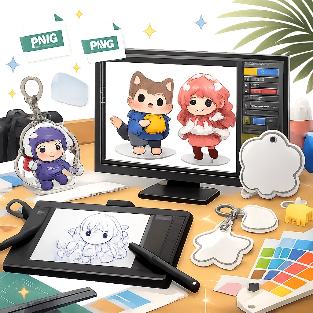 次に、png形式はその「扱いやすさ」にも優れています。一般的なデザインソフトウェアでの操作が容易で、簡単に編集や調整ができるため、初めてアクリルグッズのデザインを手掛ける方にとっても、取り組みやすいフォーマットです。また、デザインを保存する際に、画質を劣化させることなく高品質の状態を維持できるため、何度でも内容を見直すことができます。これにより、入稿前の段階で「この部分をもう少し変えたい」と思っても、気軽に修正が可能です。