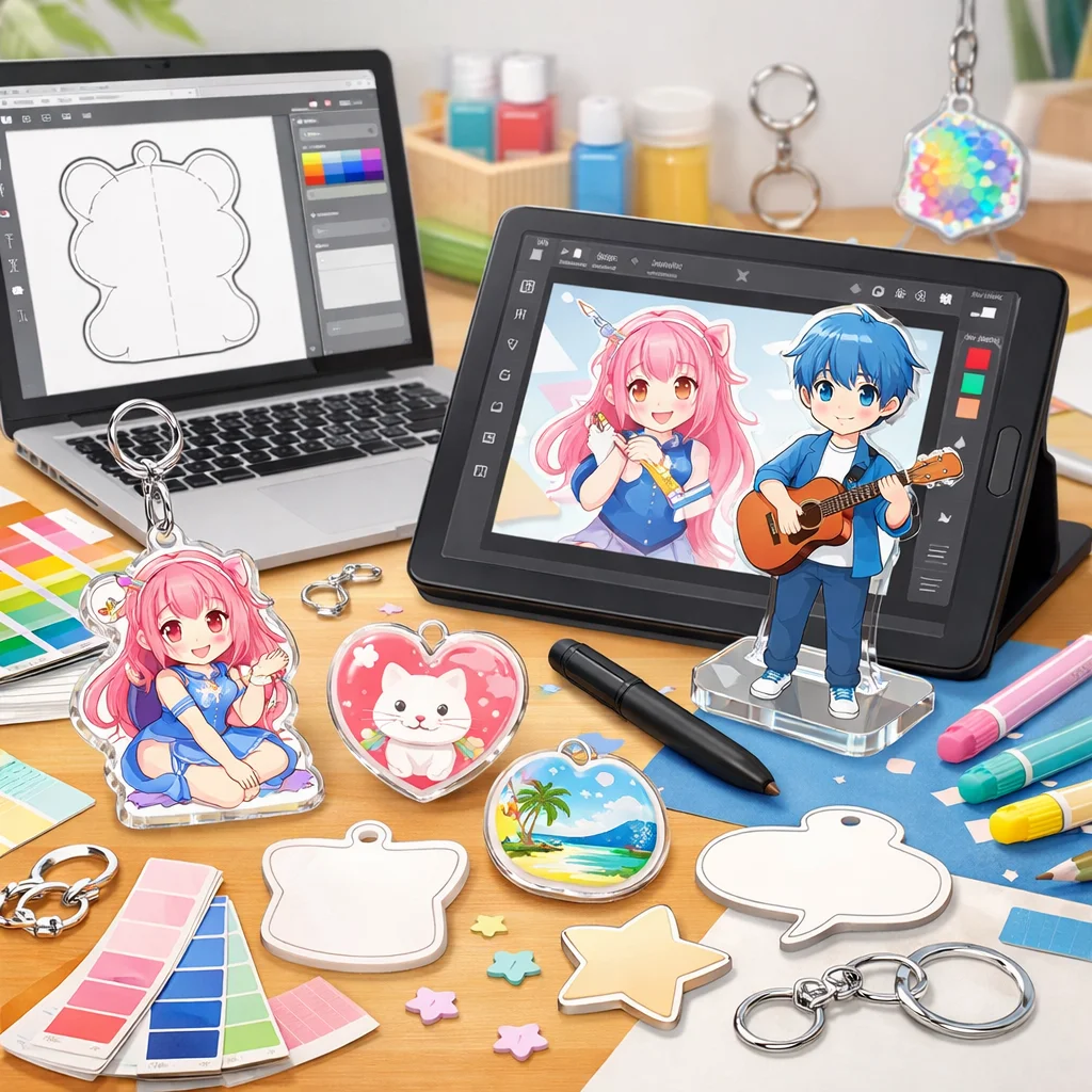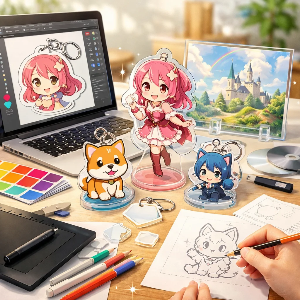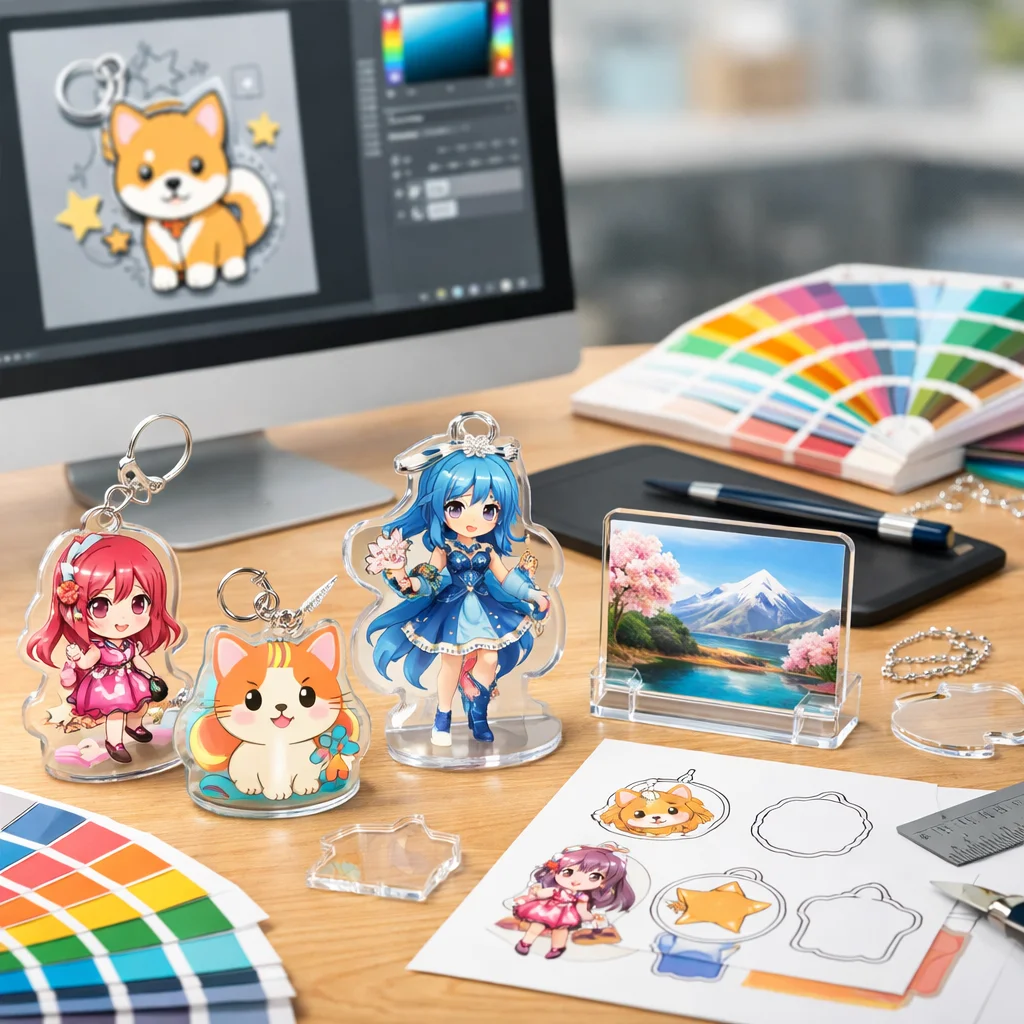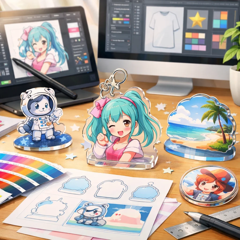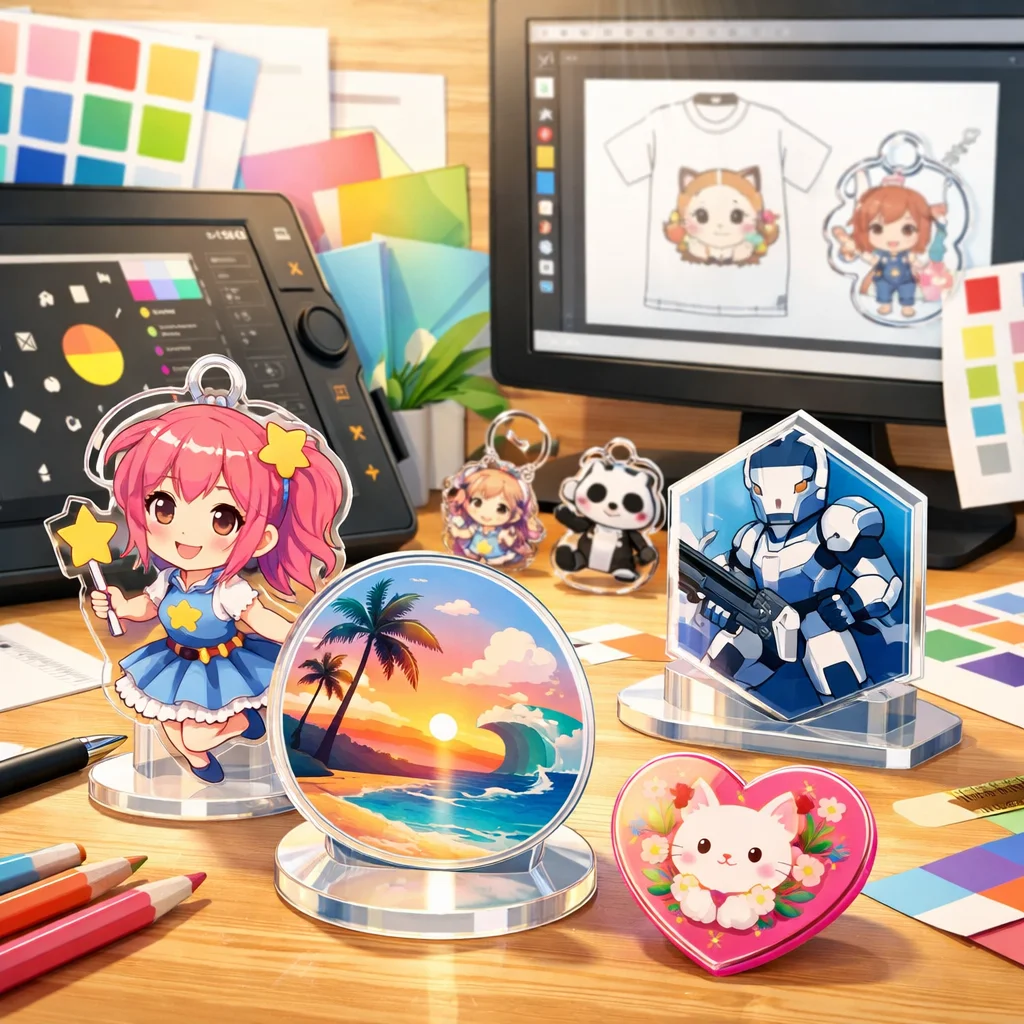 アクリルグッズは、そのデザインの幅広さと魅力から多くのシーンで活躍しています。形状や印刷表現、付加加工、ギミック、シリーズ展開など、さまざまな要素を組み合わせることで、個性豊かな商品を作り出せます。ぜひ、これらのアイデアを参考にして、オリジナルなアクリルグッズを制作してみてください。