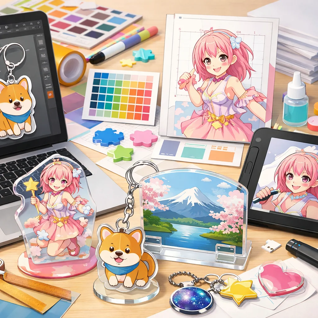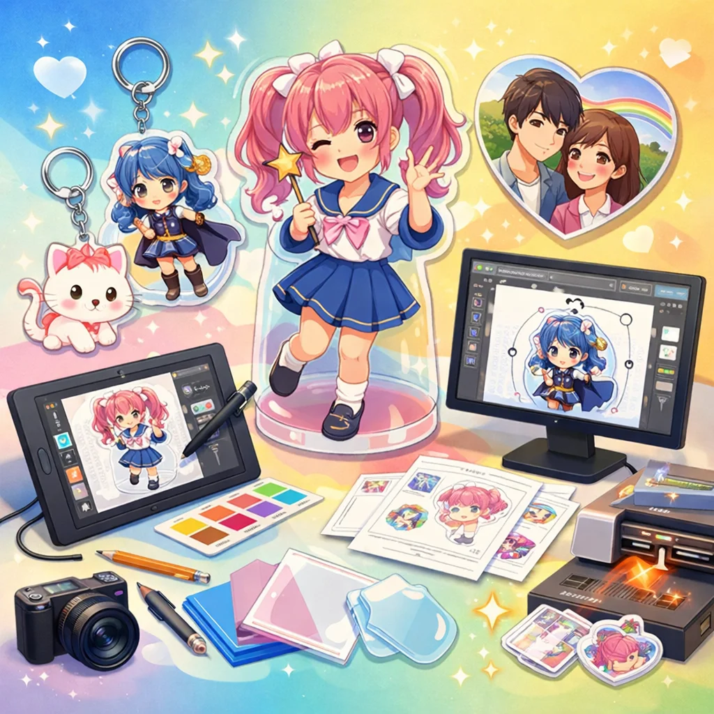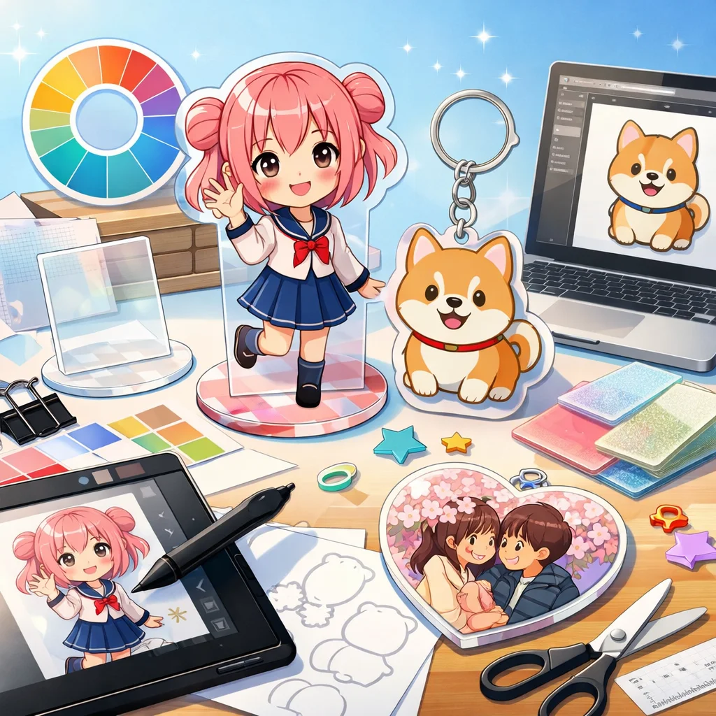 このように、アクリルグッズ制作のプロセスは段階的であり、それぞれのステップが成功に向け重要な役割を果たしています。入稿サポートを利用し、デザインに挑戦する力を身につけ、困難を乗り越えて魅力的なアクリルグッズを制作していきましょう。