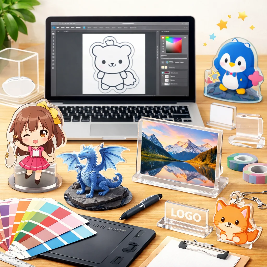 アクリルグッズの制作を行う際、特に初めての方にとって「業者にデザイン依頼」や「自作データを入稿」する際に考慮すべきポイントは数多くあります。これらの要件をしっかりと整理することで、スムーズかつ高品質な製品を手に入れることができます。ここでは、アクリルグッズの製作にあたり、発注前に必ず決めるべき要件について詳しく解説します。