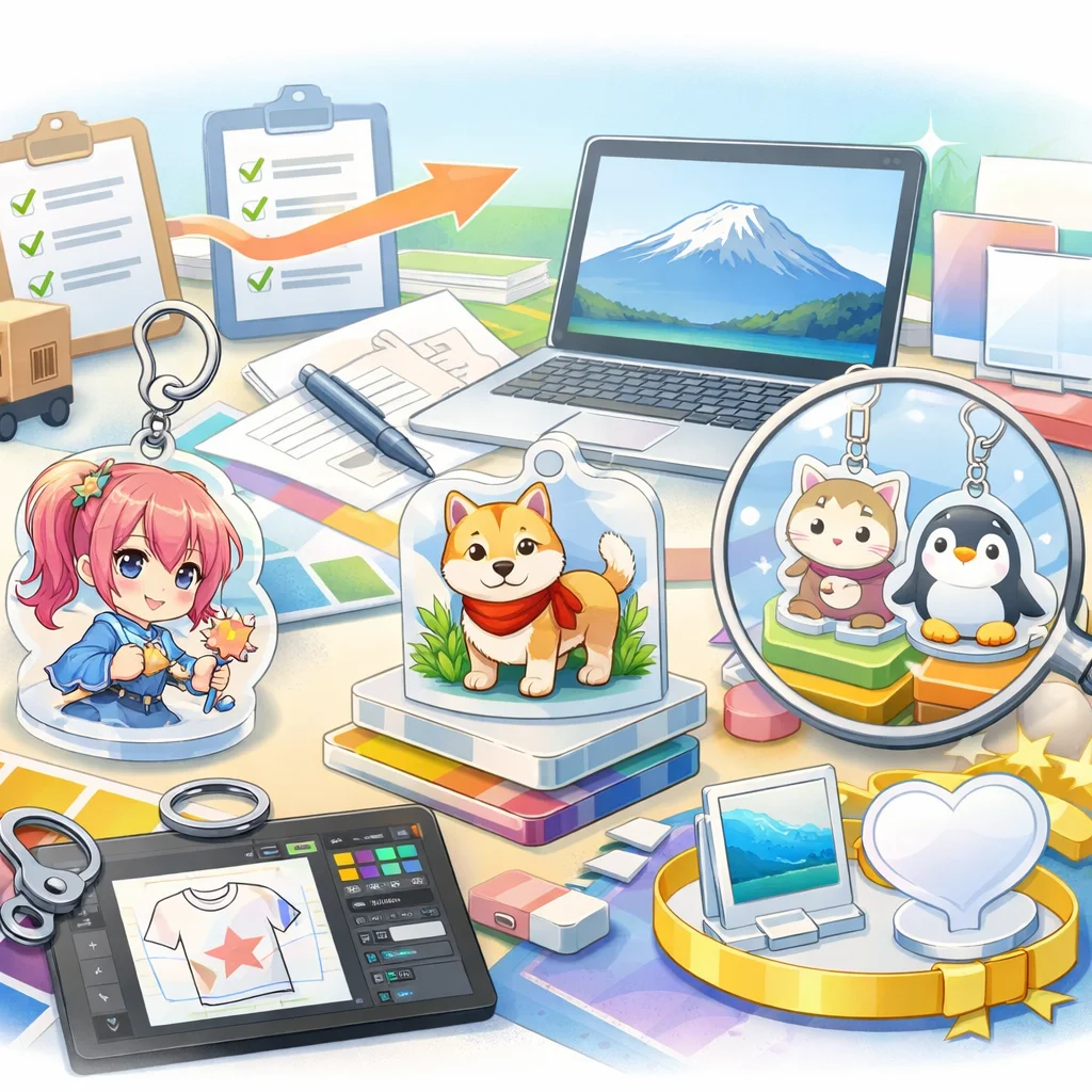 アクリルグッズの製作業者選びには、要件固定から始まり、見積取得無料サンプルの確認、チェック表による採点を経て総合判断が必要です。入稿サポートの質と実際の製品を確認することで、より満足のいく結果が得られます。