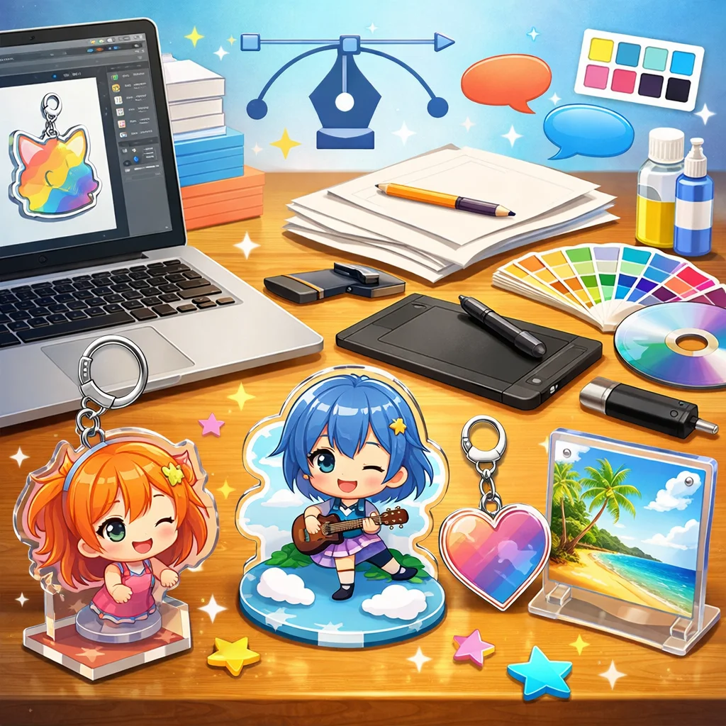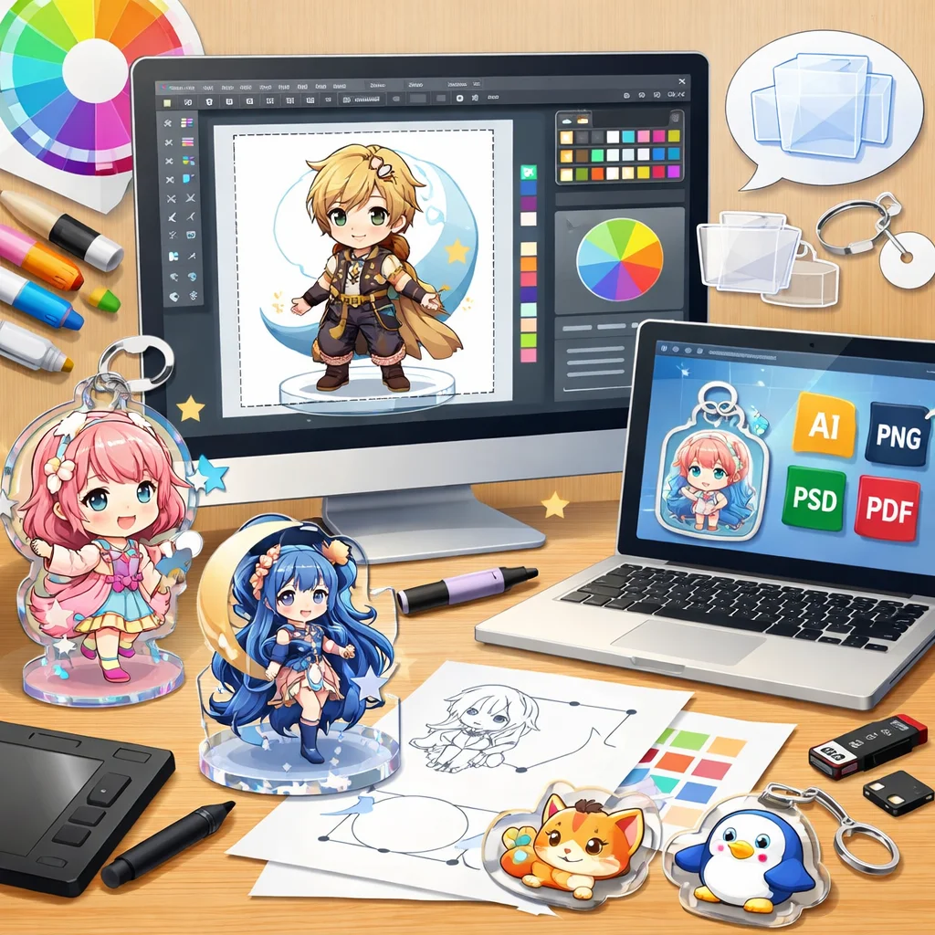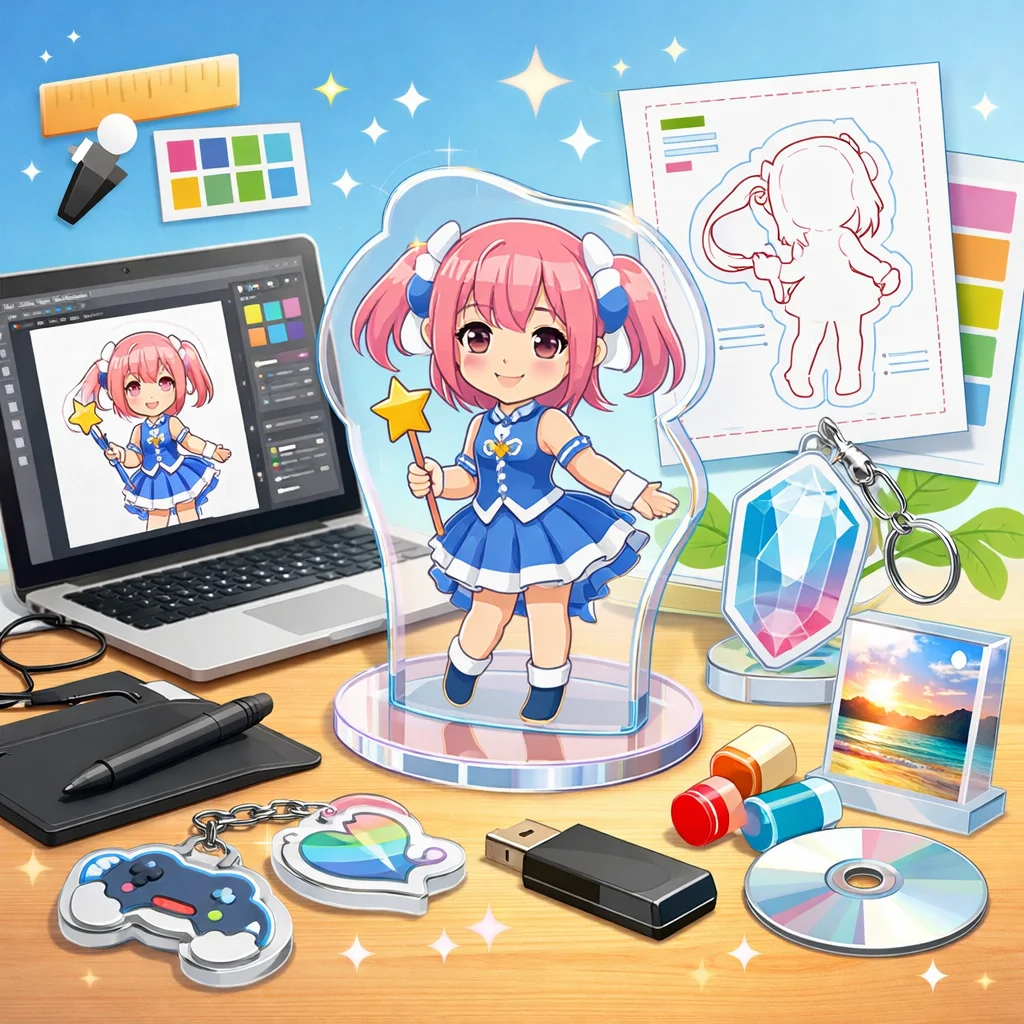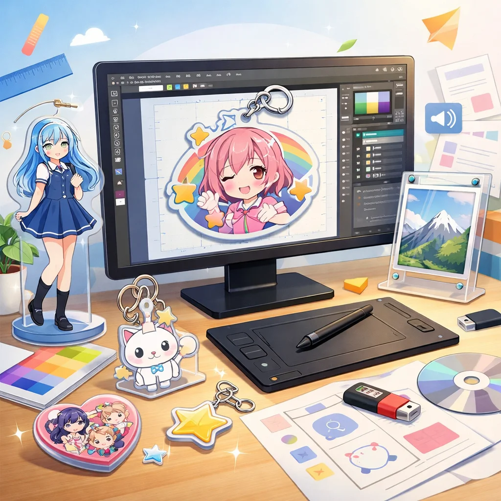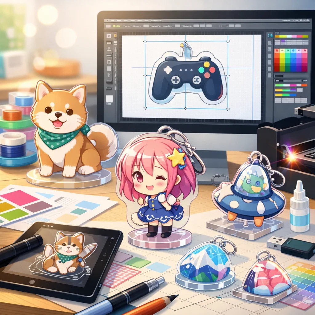 アクリルグッズのデザインデータ作成は、適切な入稿形式の選択が鍵となります。印刷所の指示をしっかり確認し、高品質な仕上がりを目指しましょう。さまざまな形式の特性を理解し、元のデザインの意図を損なわないよう工夫を重ねていきましょう。
