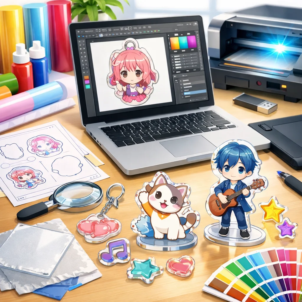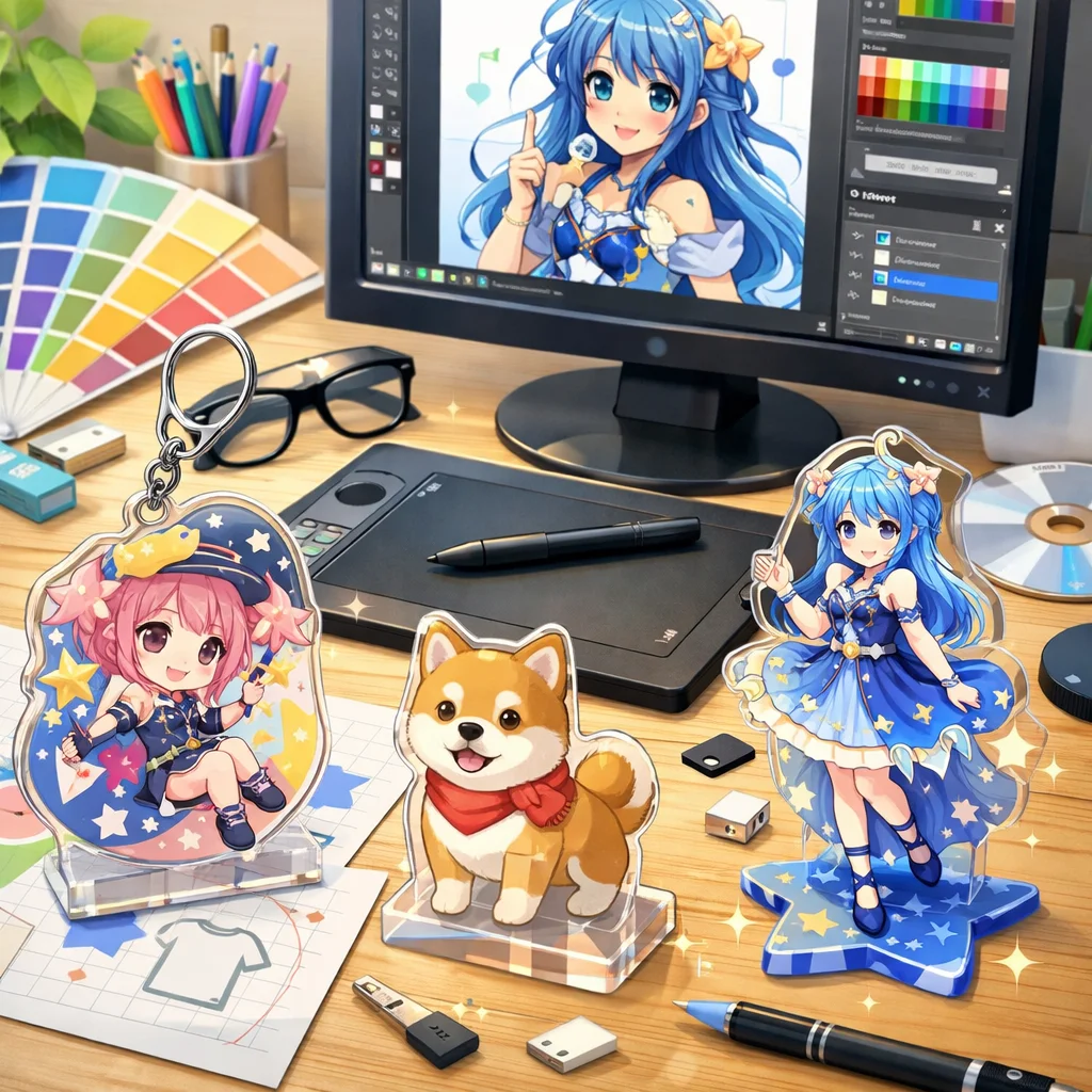 2. デザイン:企画に基づいてアクリルグッズの具体的なデザインを作成します。このプロセスでは、ビジュアルやレイアウトが重要なポイントとなります。