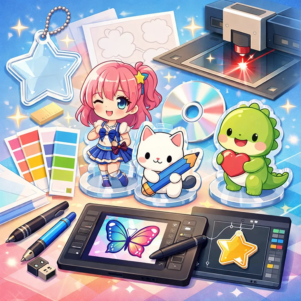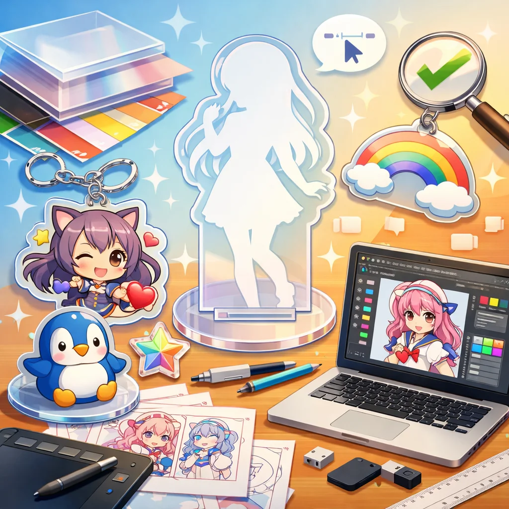 アクリルグッズのデザインデータ作成は、製品の品質を決定づける重要な工程です。適切なデータ作成を行い、スケジュール管理とフィードバックを適切に行うことで、満足のいくアクリルグッズを製作することができます。