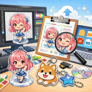 これらのポイントに注意しながらアクリルグッズのデザインやデータ作成を進めれば、スムーズな入稿が可能になります。入稿サポートを活用することで、さらに理想的なアクリルグッズの制作が実現できるでしょう。しっかりと準備を整えて、魅力的なアクリルグッズのデザインに挑戦しましょう。