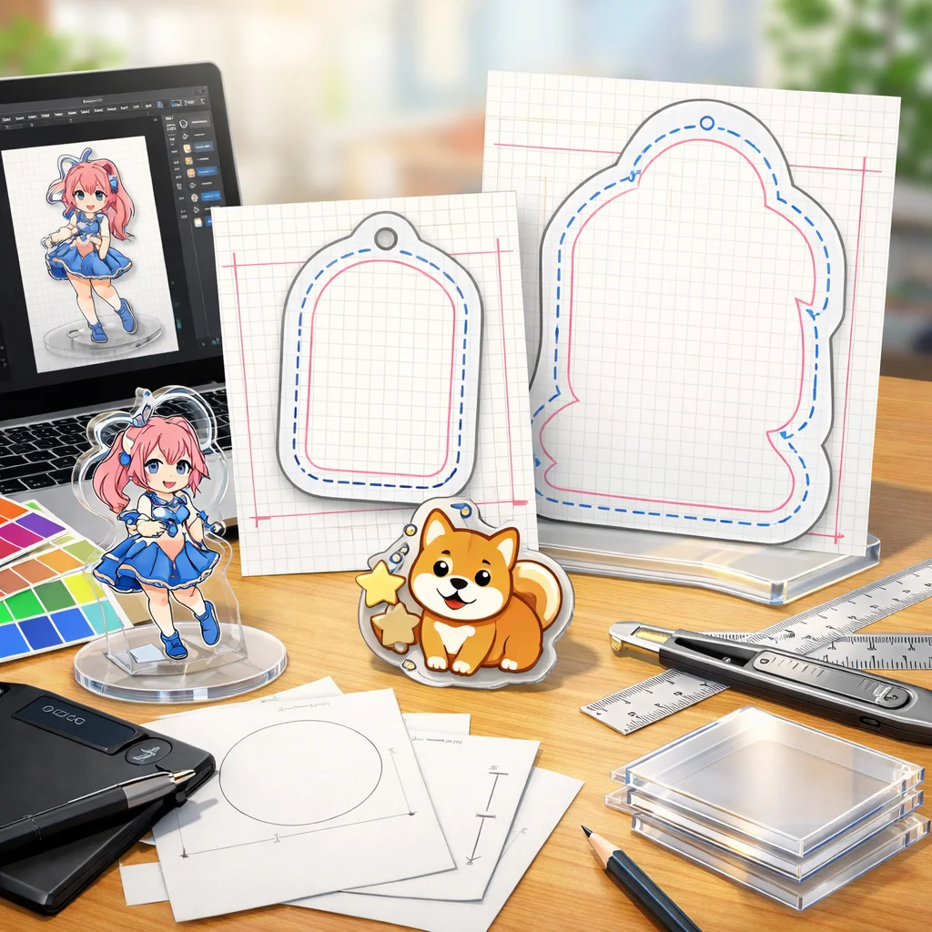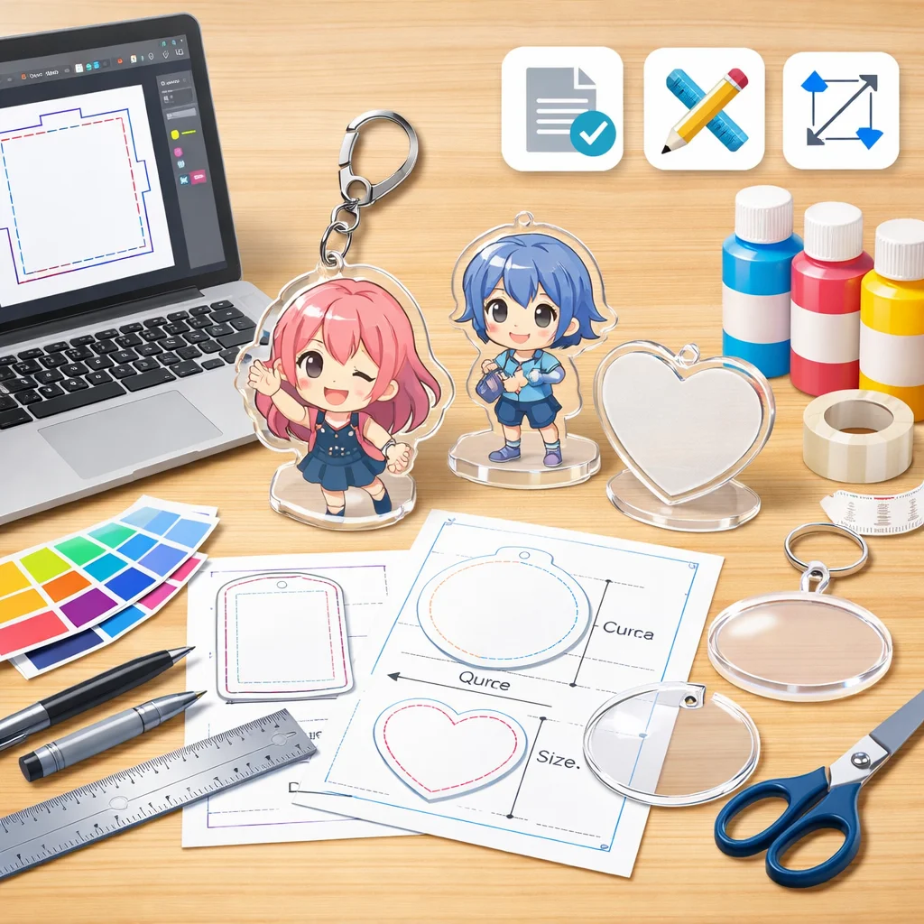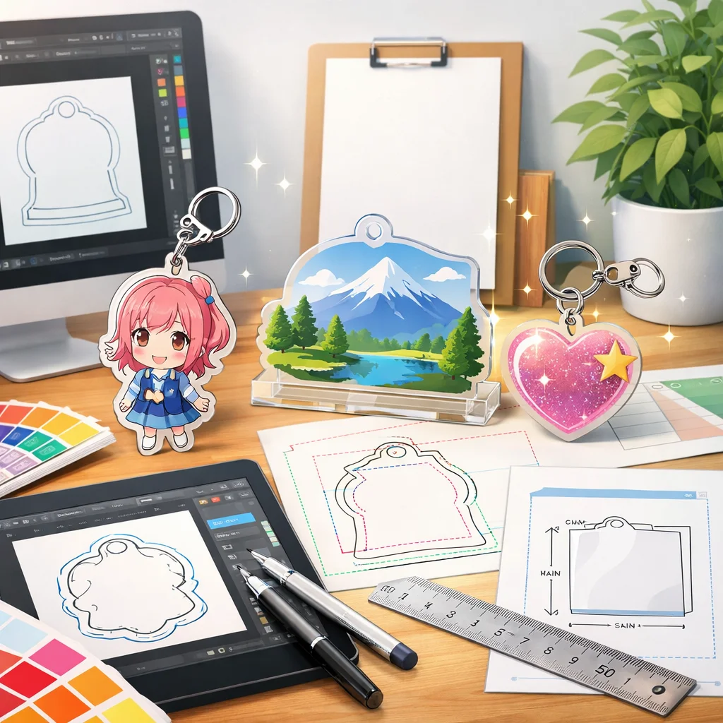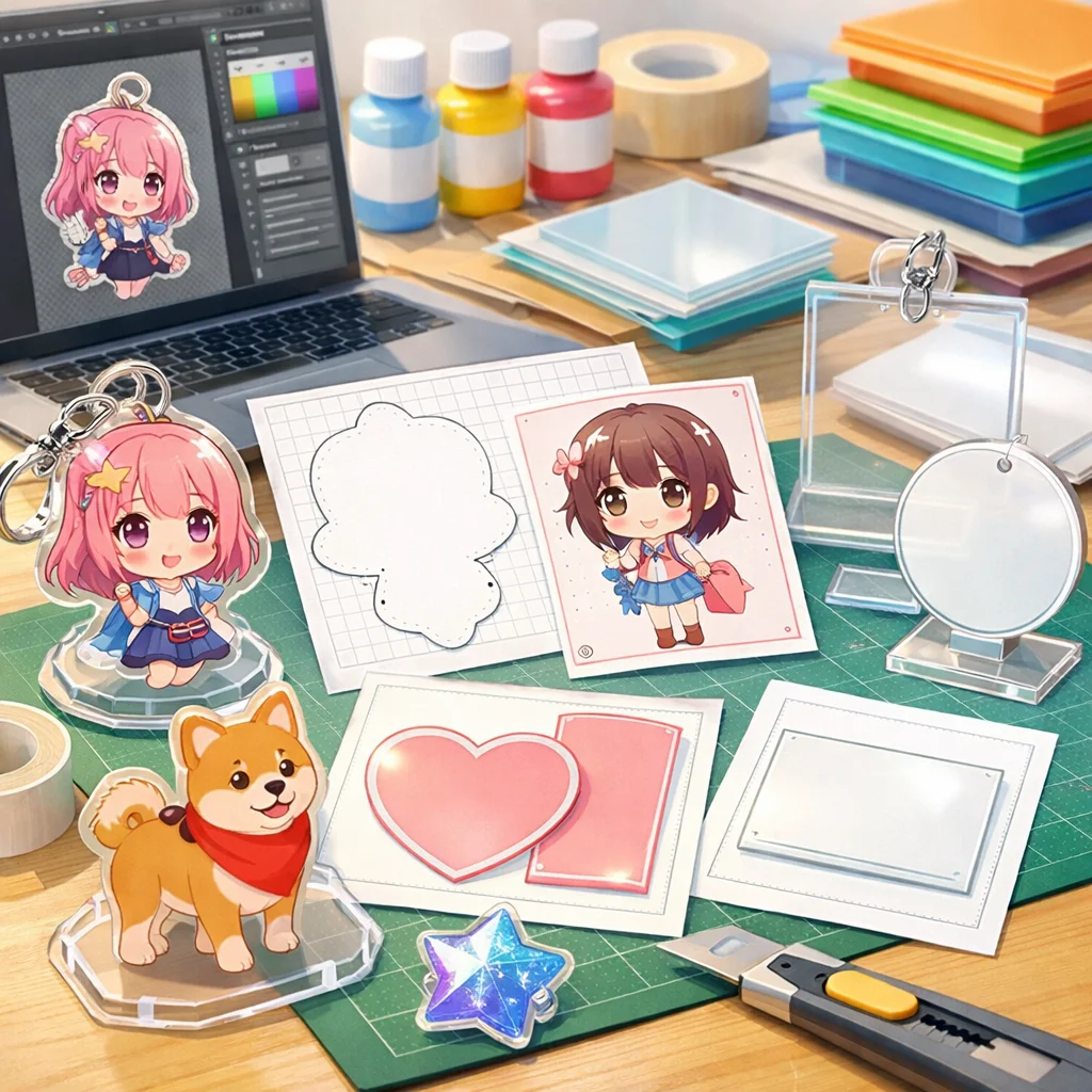 アクリルグッズのデザインは楽しく、クリエイティブなプロセスです。専用テンプレートを活用することで、制作がよりスムーズになります。印刷範囲やカット線など、基本的なポイントを押さえて、魅力的なアクリルグッズを作り上げてください。皆さんのアイデアが素敵な作品に仕上がることを願っています。