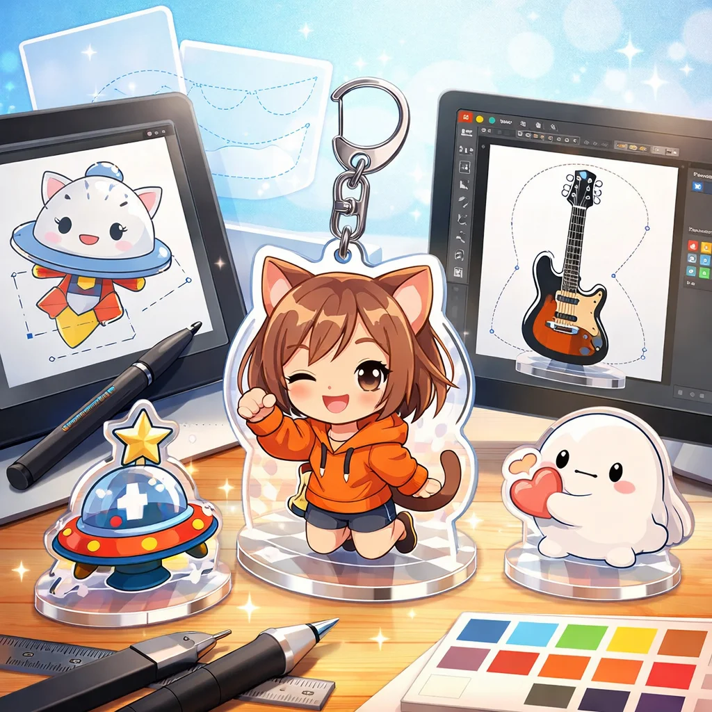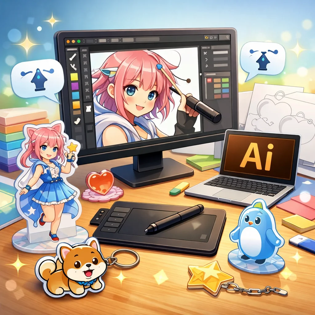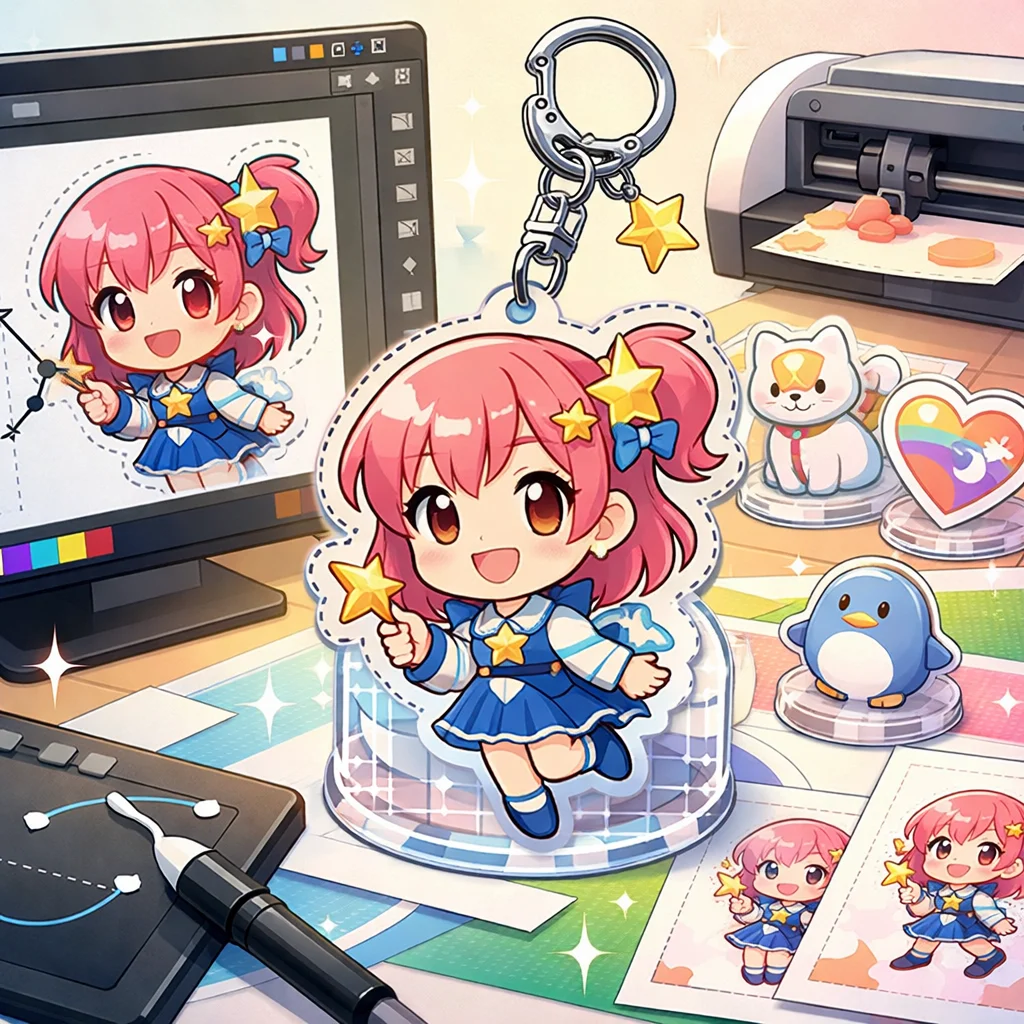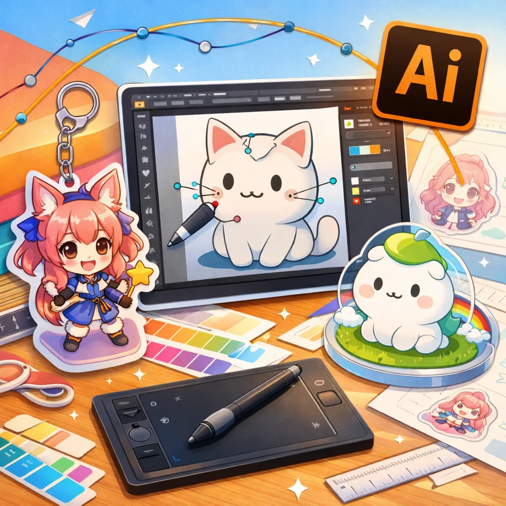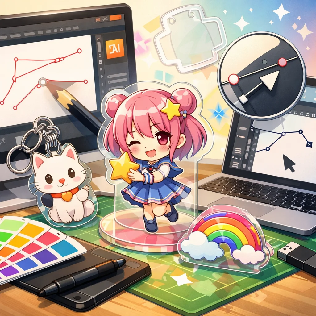 アクリルグッズのデザイン制作において、Illustratorは非常に重要な役割を果たします。特に、アクリルキーホルダーなどの製作時には、Illustratorを用いて作成したデータが各工程でどのように活用されるかを理解することが、スムーズな制作プロセスに繋がります。