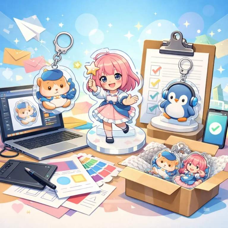 アクリルグッズデザインの入稿サポートとは?基礎知識 アクリルグッズの制作を初めて行う個人や同人、企業担当者の方々にとって、デザインの入稿サポートは非常に重要な役割を果たします。このサポートは、データチェック、テンプレート […]